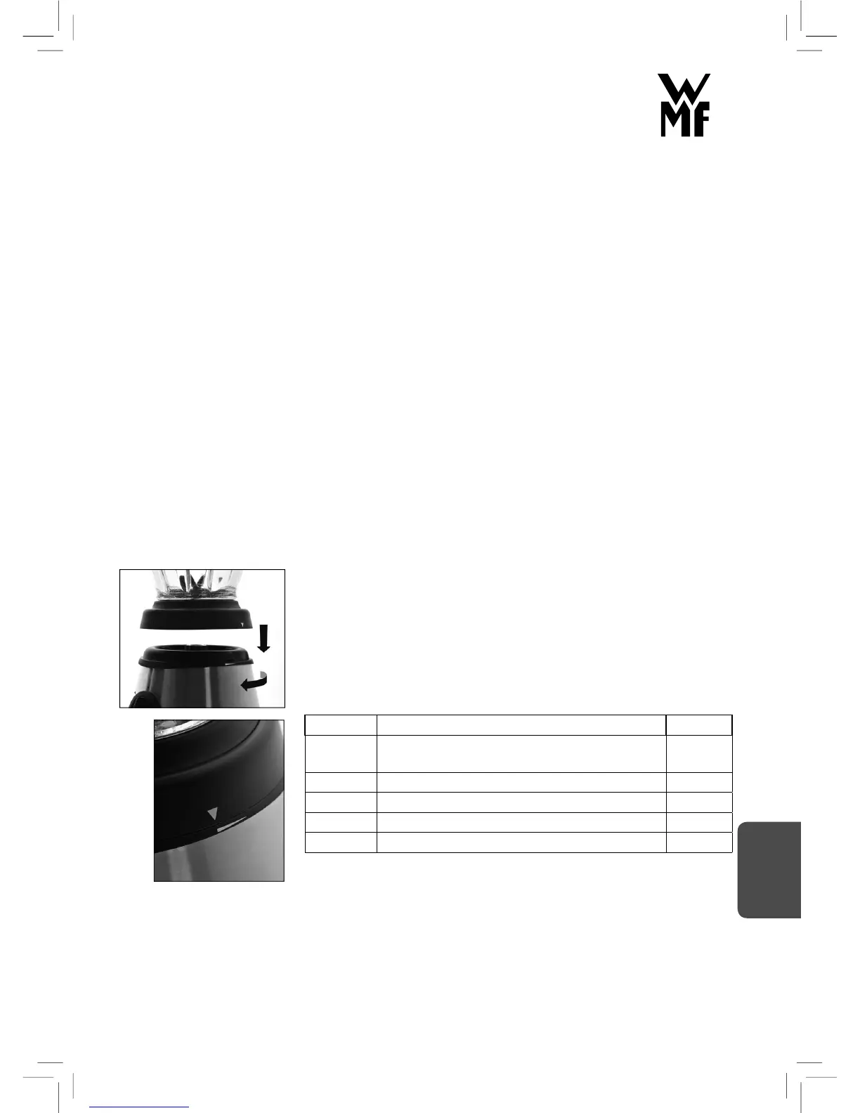 Varo, ettet loukkaa itseäsi terävissä terissä. Aseta lasikannu käyttöyk-