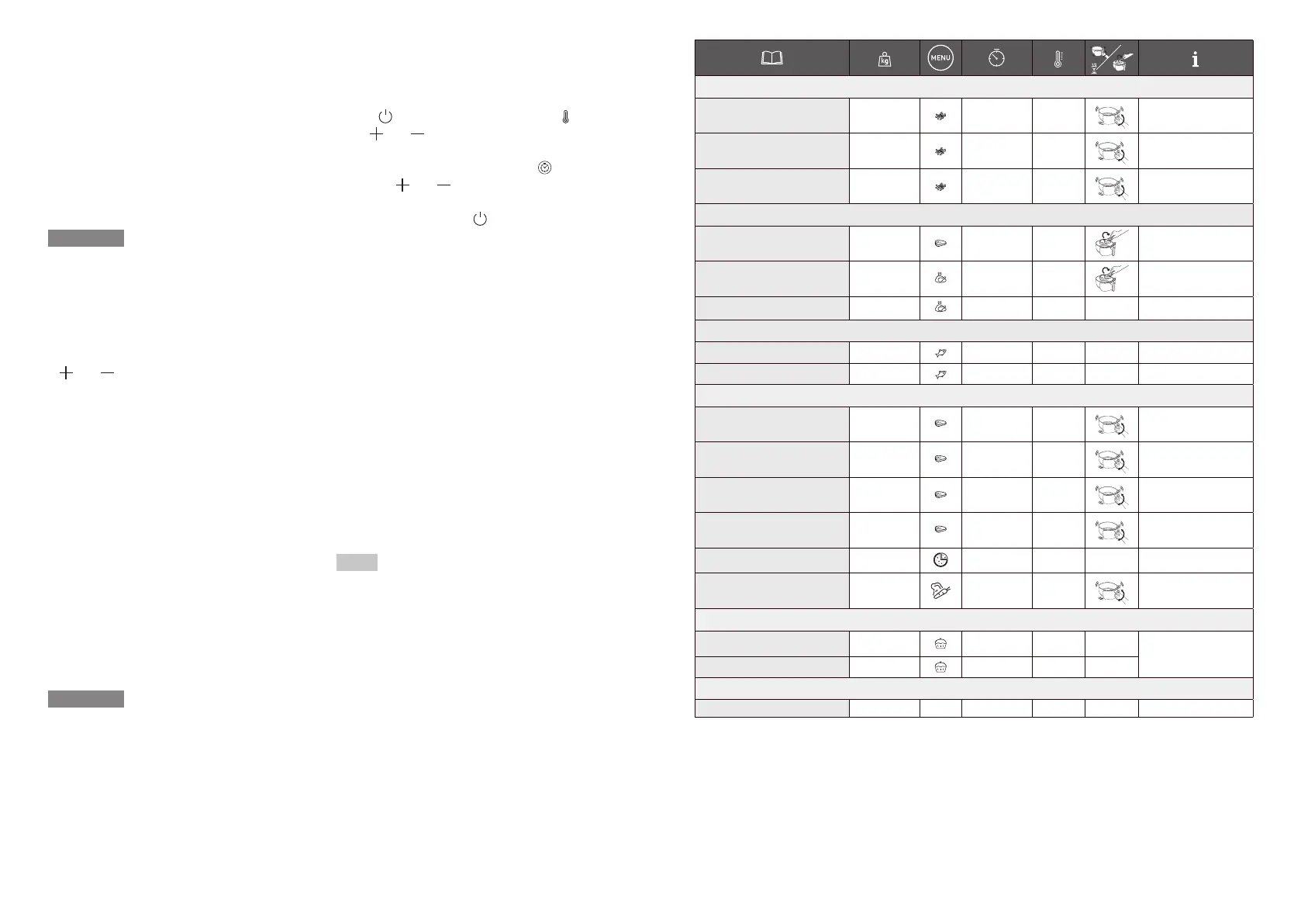 and buttons (see section ‘Cooking guide’).