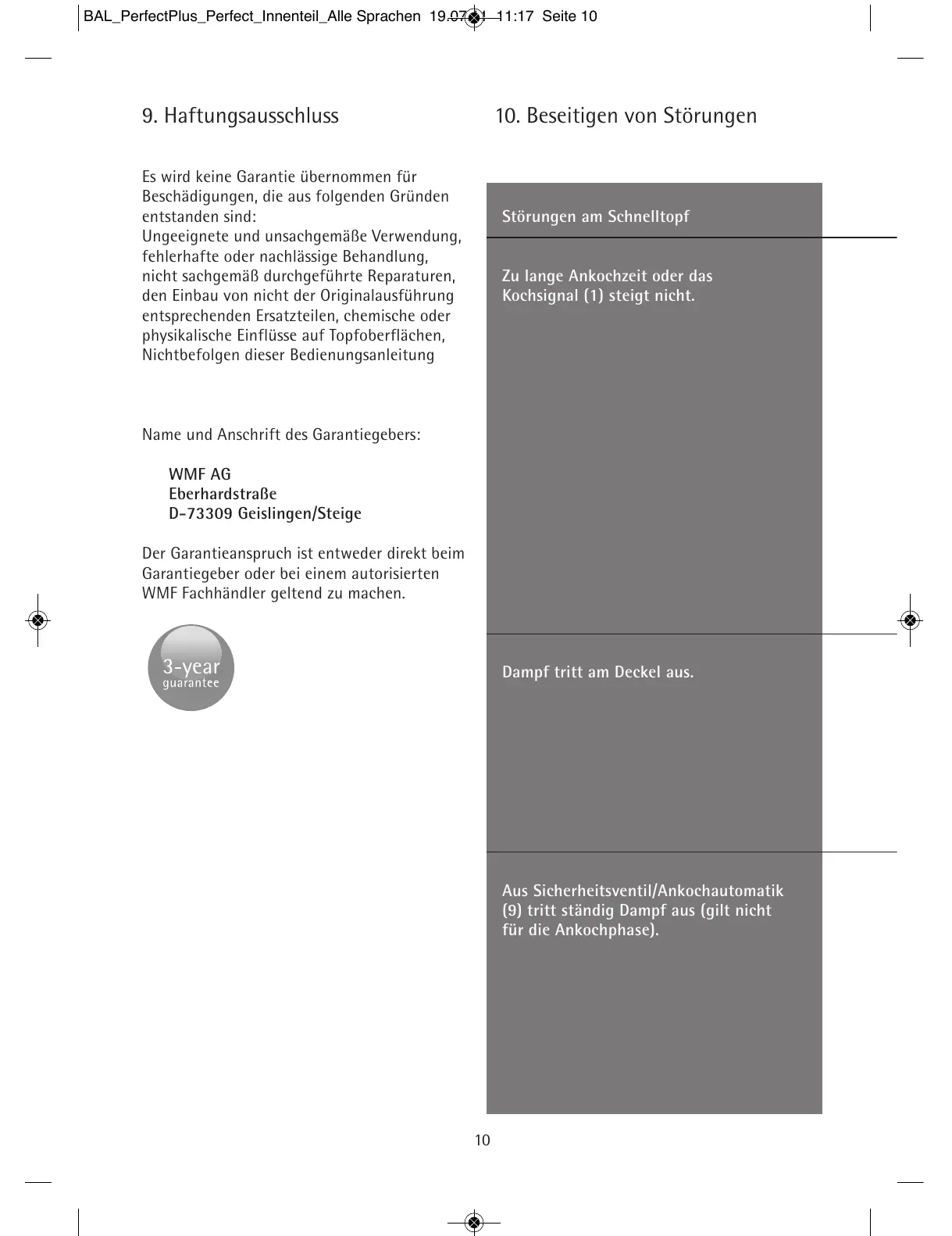 10. Beseitigen von Störungen