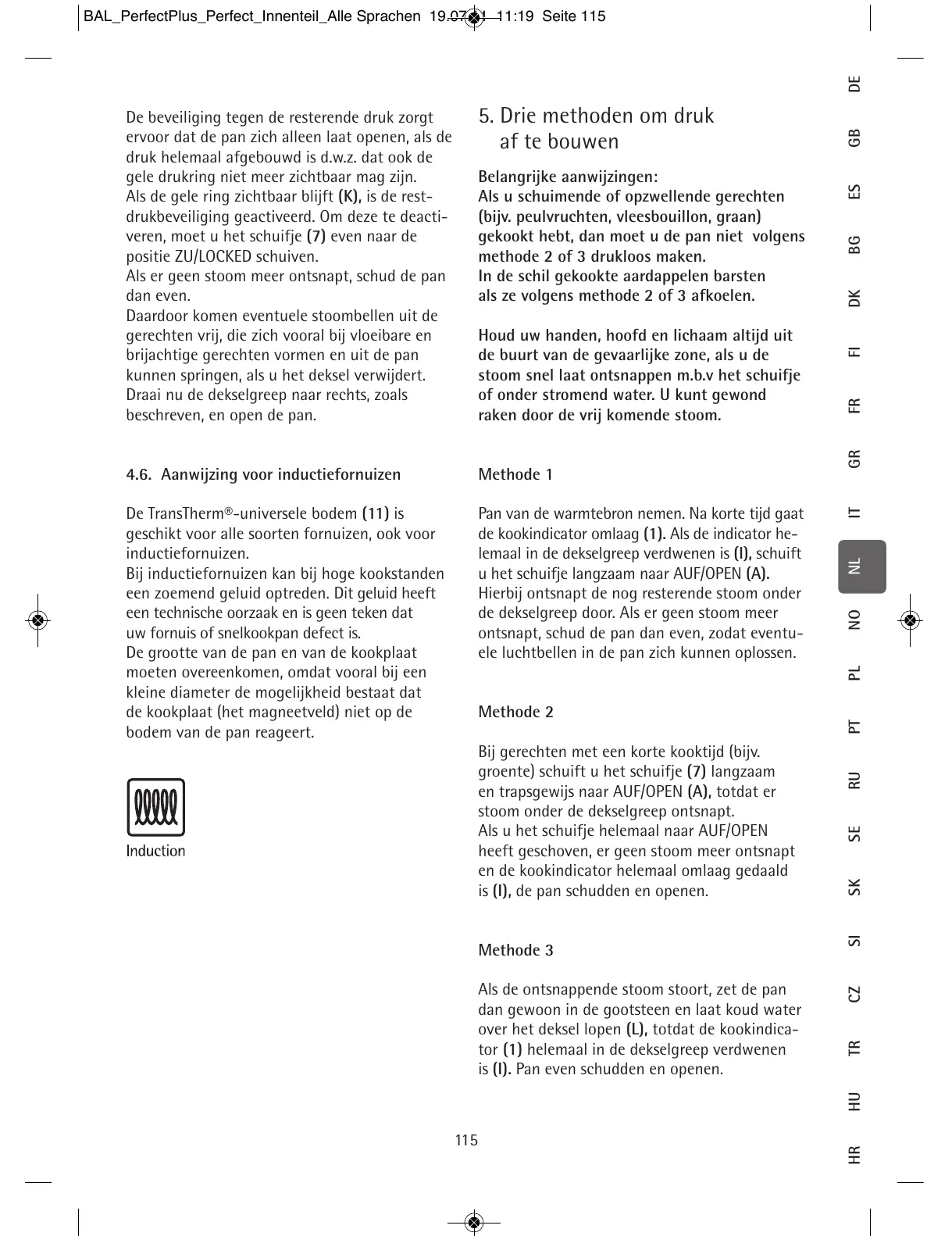 over het deksel lopen (L), totdat de kookindica-