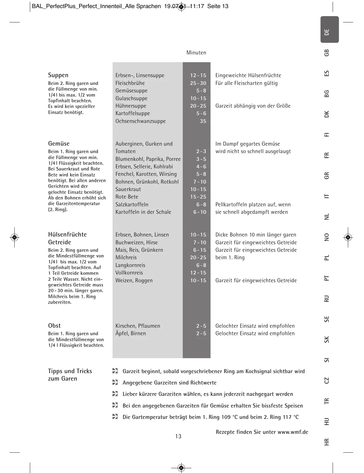 Angegebene Garzeiten sind Richtwerte