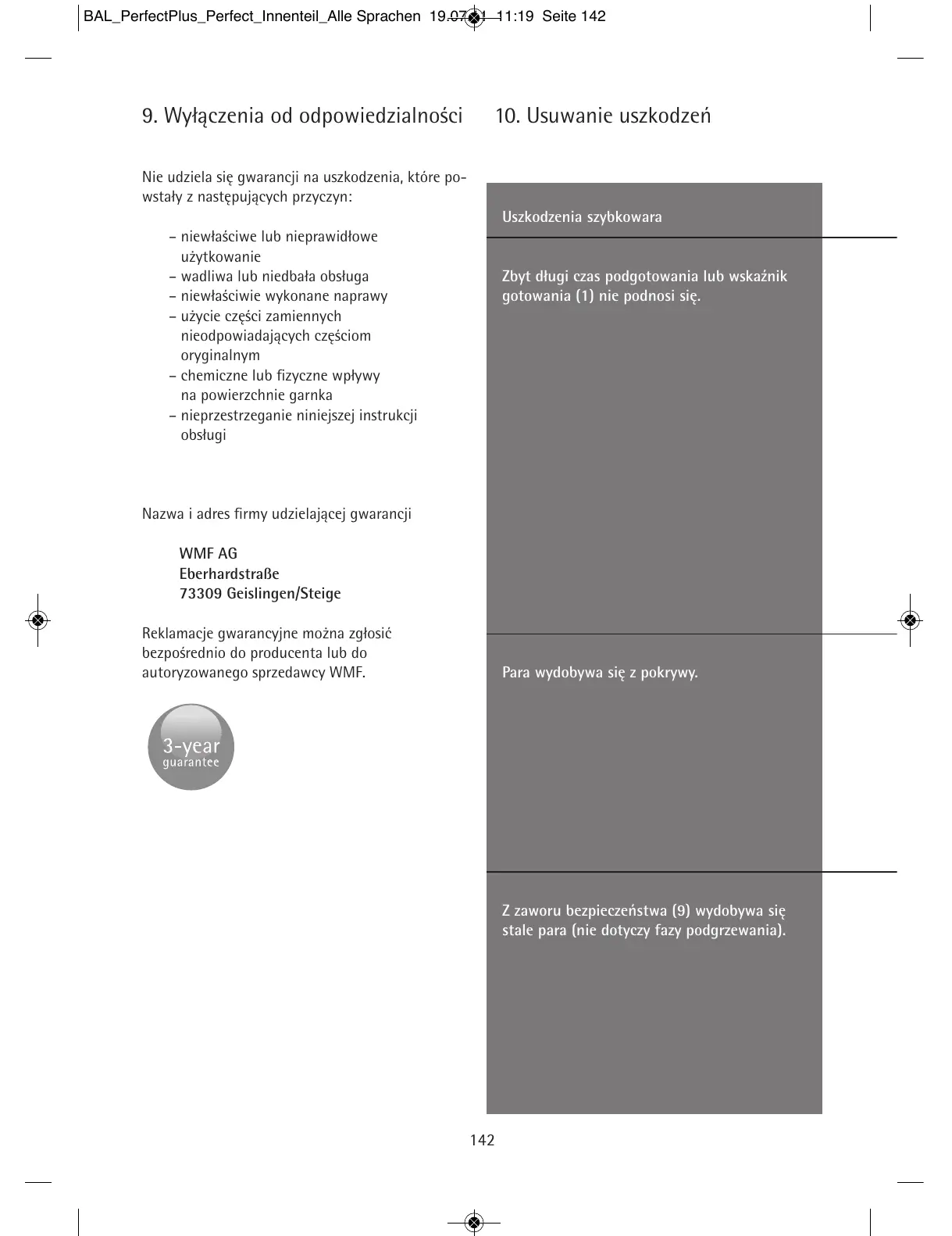 Nie udziela się gwarancji na uszkodzenia, które po-