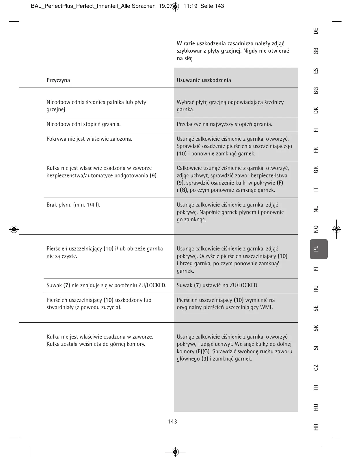 Usunąć całkowicie ciśnienie z garnka, otworzyć