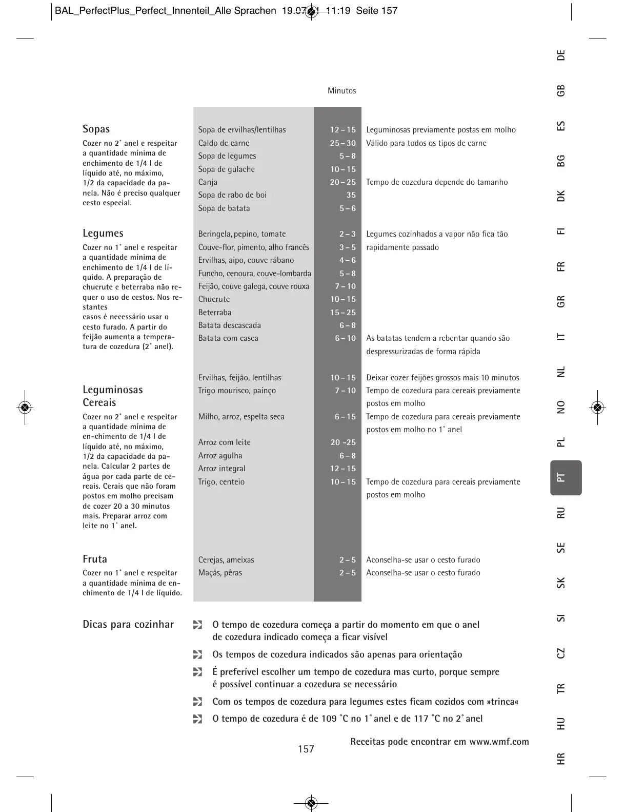 Os tempos de cozedura indicados são apenas para orientação