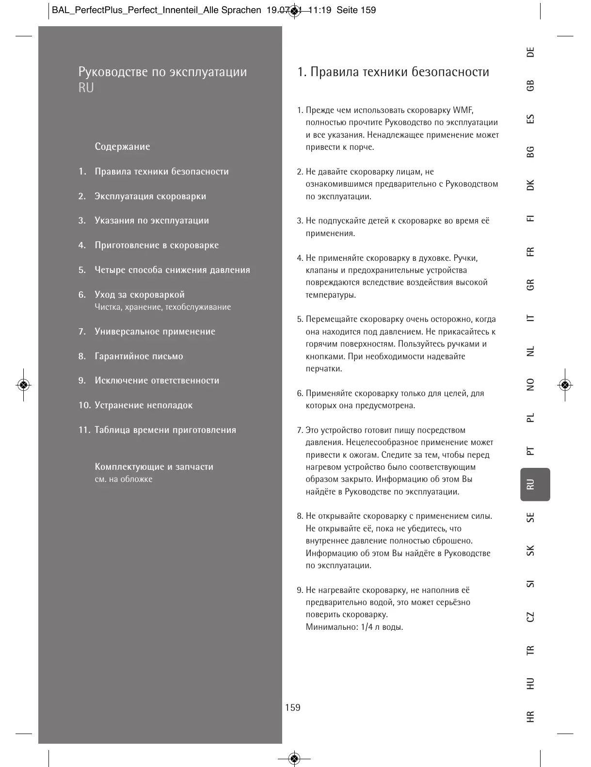 1. Прежде чем использовать скороварку WMF,