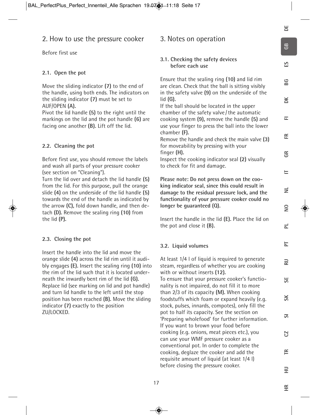 than 2/3 of its capacity (M). When cooking