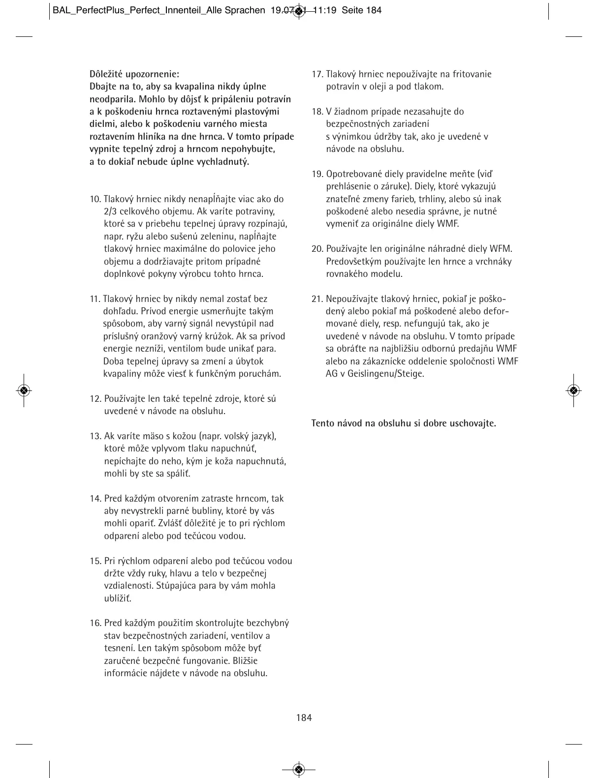 21. Nepoužívajte tlakový hrniec, pokiaľ je poško-