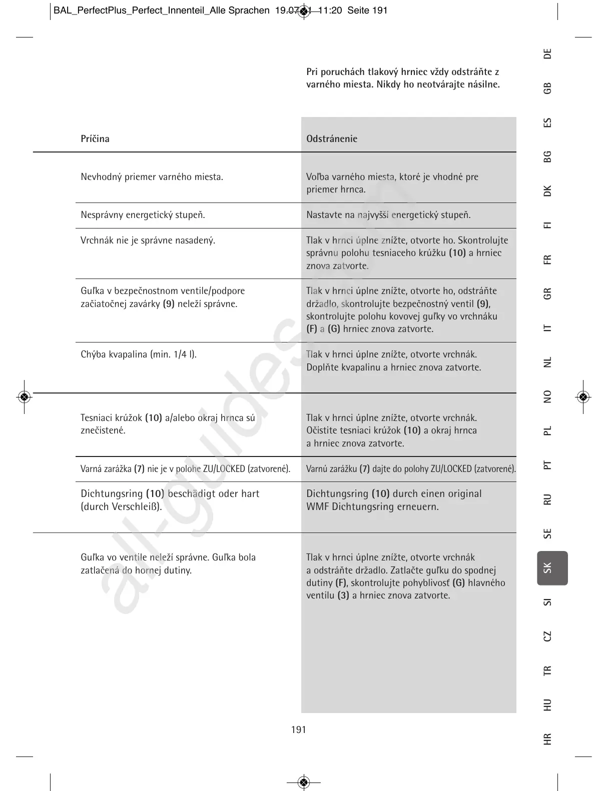 Pri poruchách tlakový hrniec vždy odstráňte z