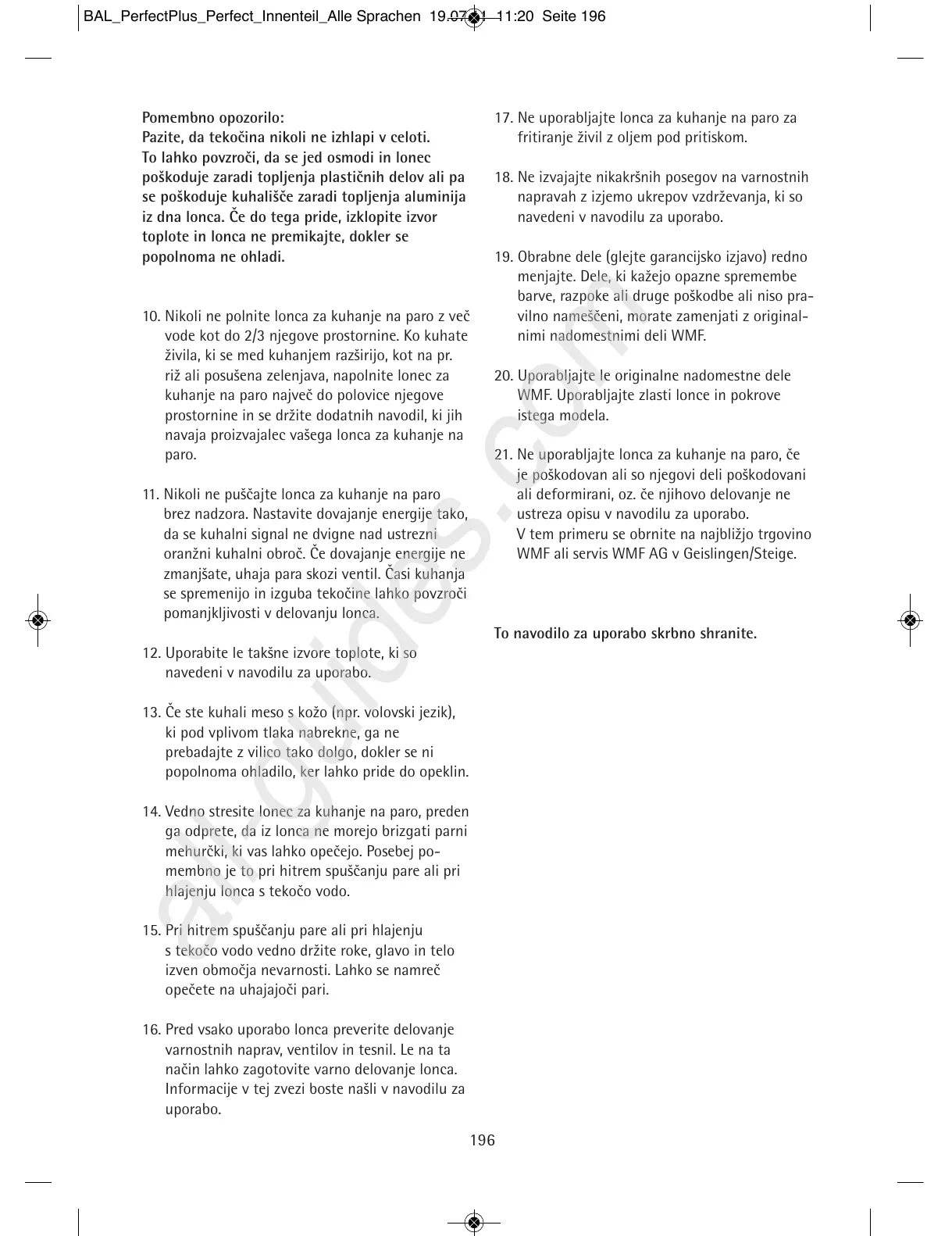 21. Ne uporabljajte lonca za kuhanje na paro, če