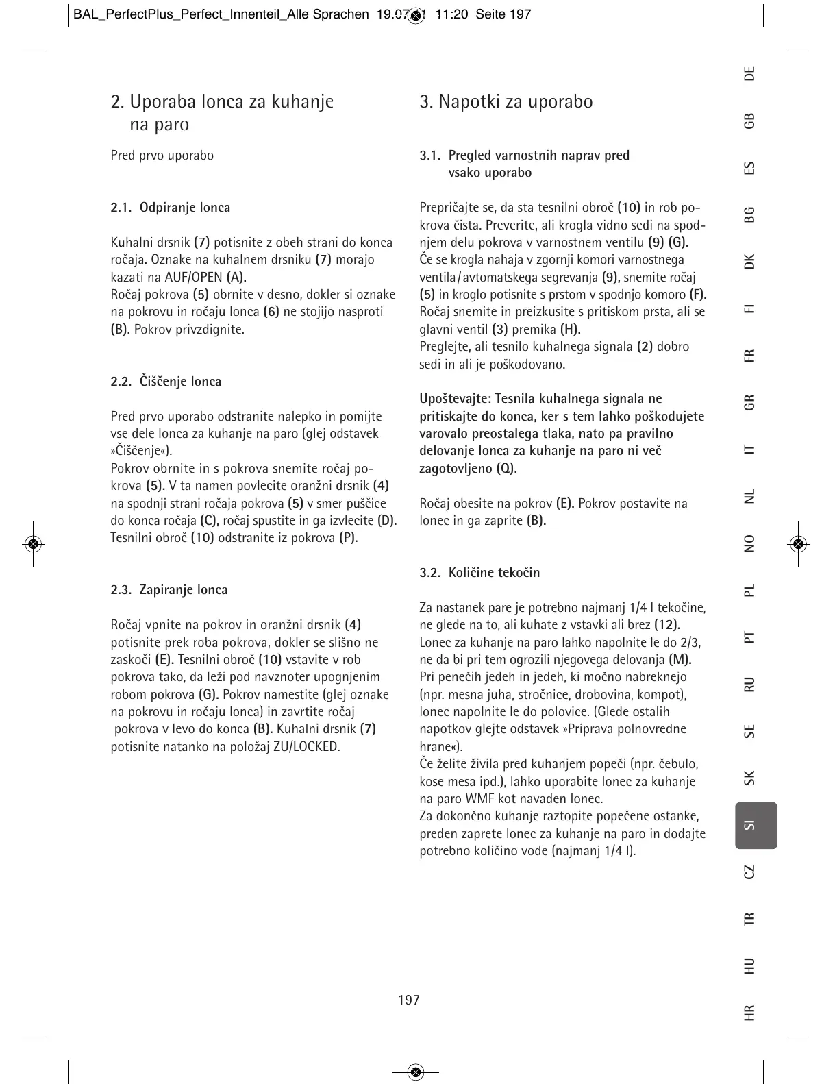 robom pokrova (G). Pokrov namestite (glej oznake
