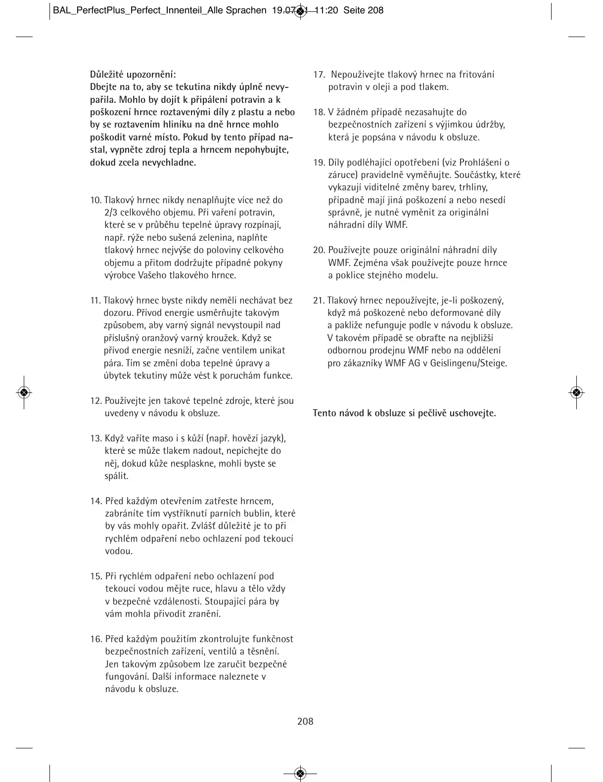21. Tlakový hrnec nepoužívejte, je-li poškozený,