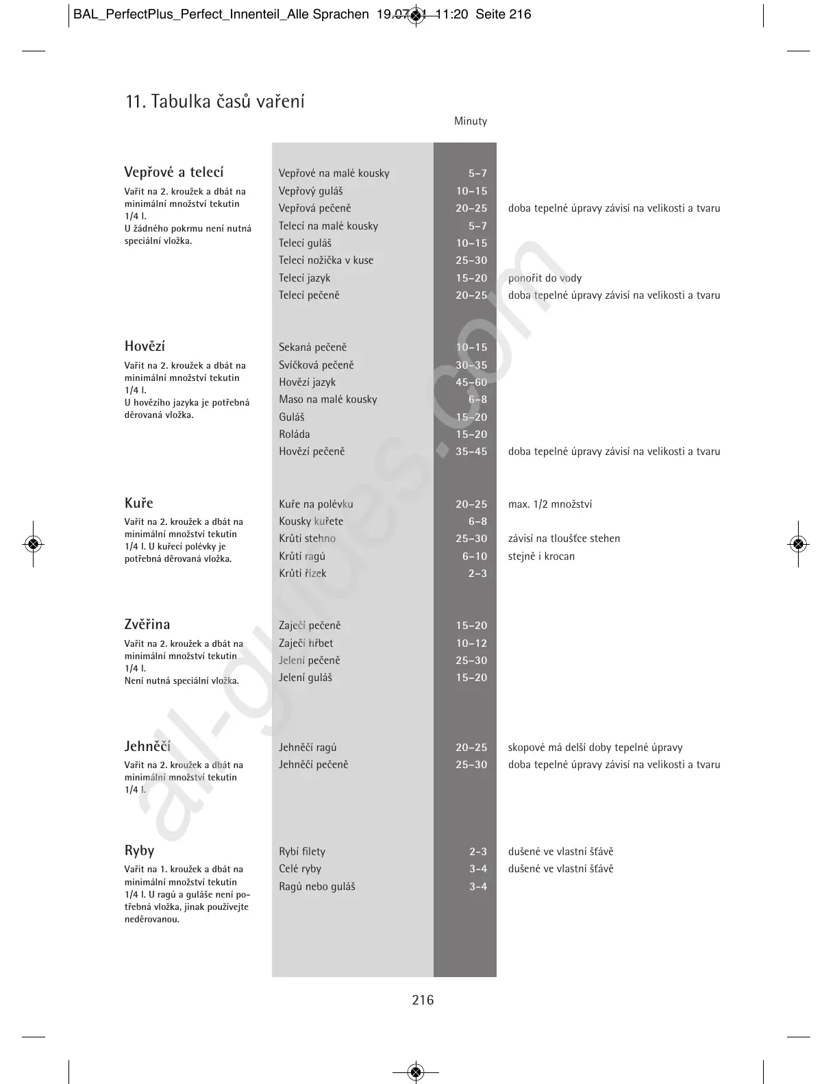 11. Tabulka časů vaření