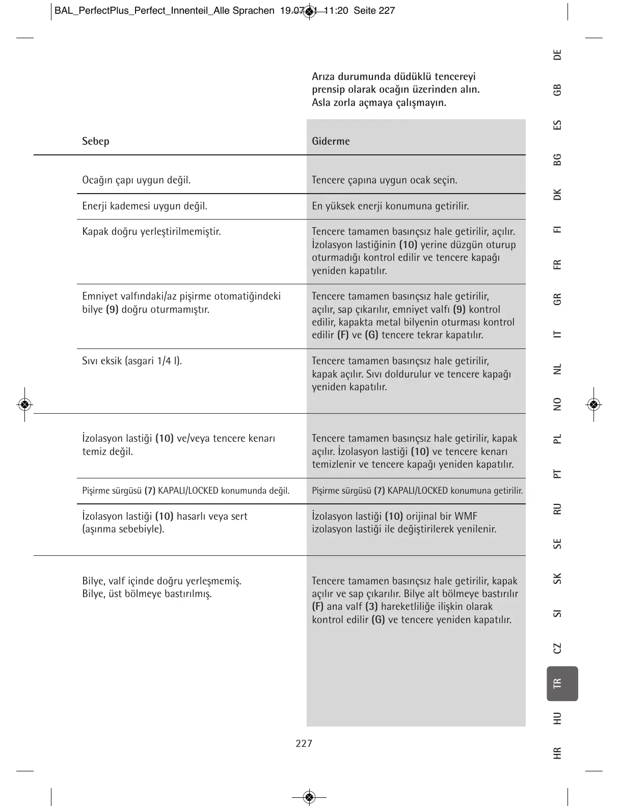 kontrol edilir (G) ve tencere yeniden kapatılır.
