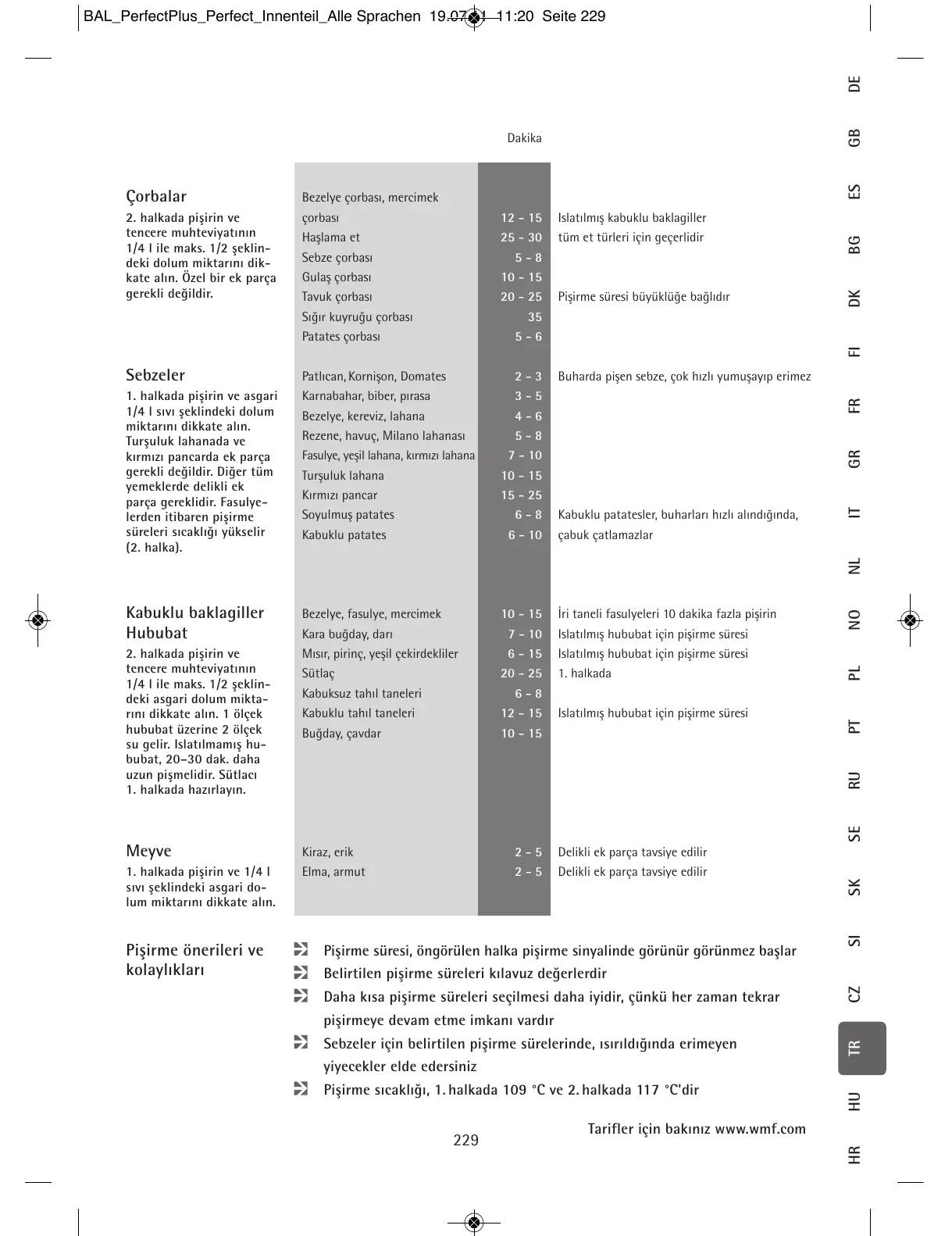 Belirtilen pişirme süreleri kılavuz değerlerdir