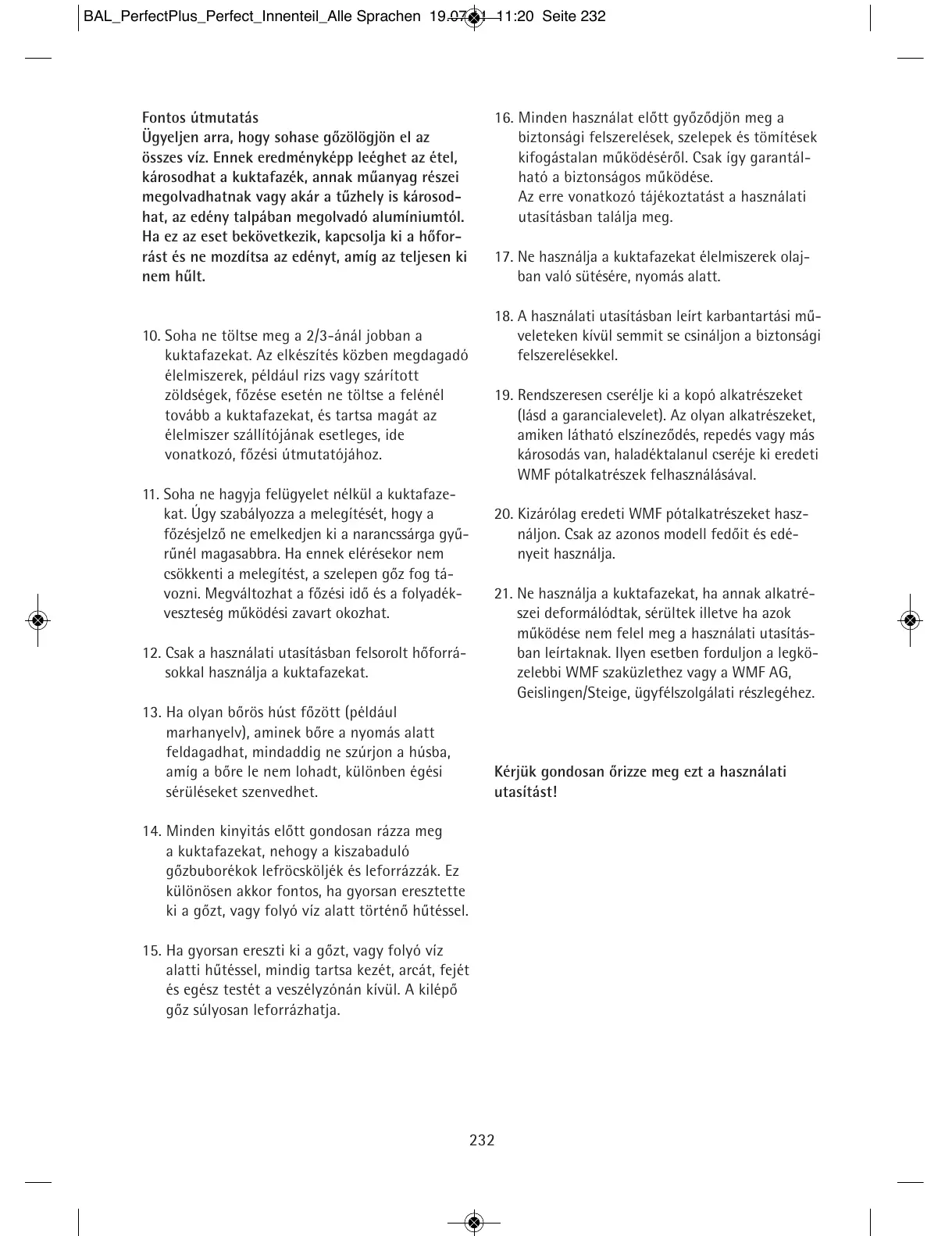 20. Kizárólag eredeti WMF pótalkatrészeket hasz-