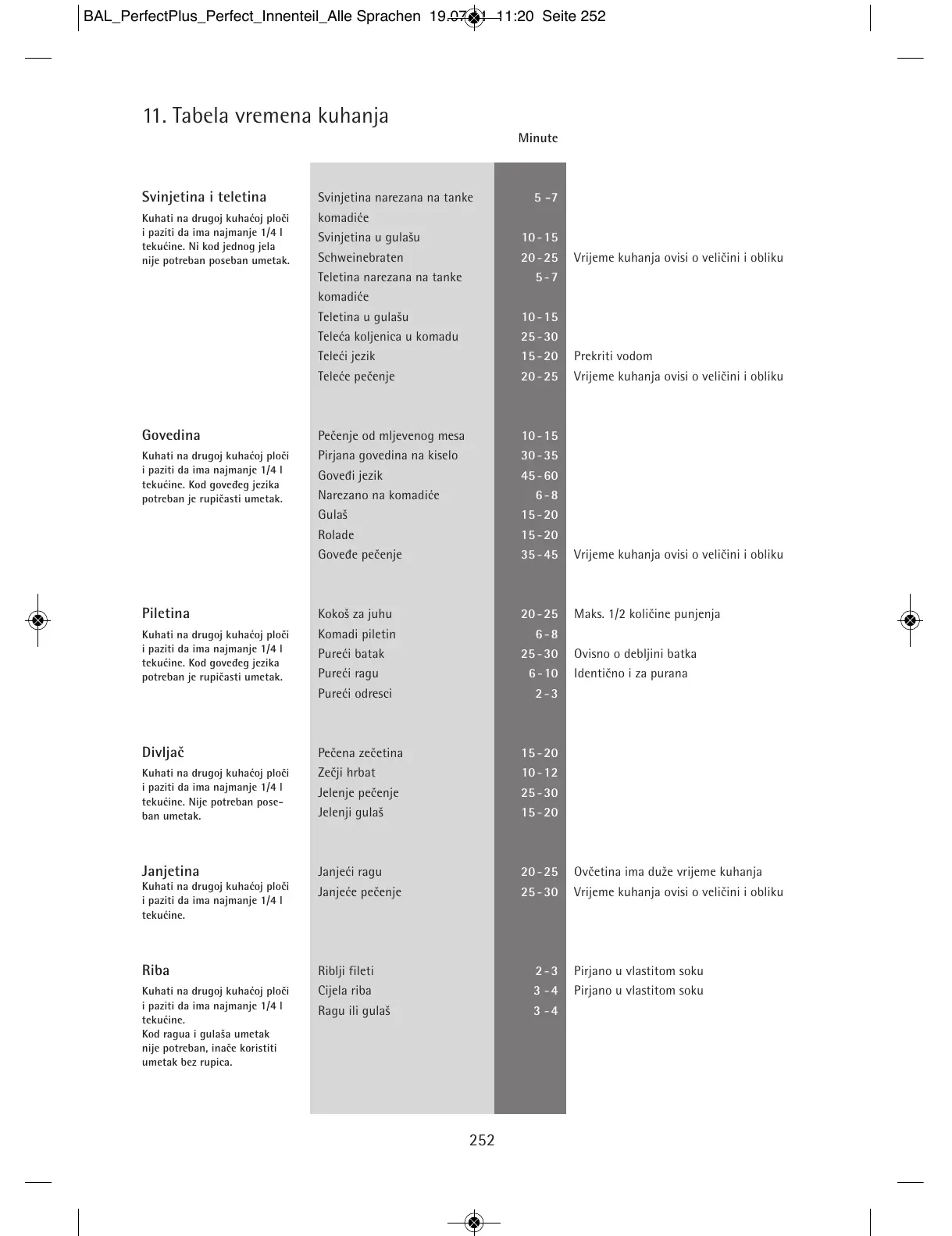 11. Tabela vremena kuhanja