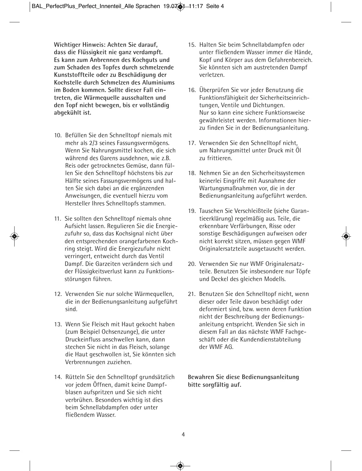 21. Benutzen Sie den Schnelltopf nicht, wenn