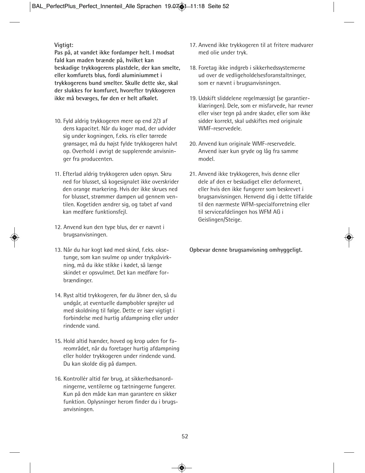 17. Anvend ikke trykkogeren til at fritere madvarer