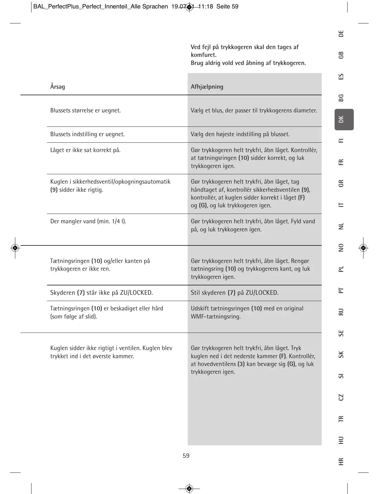 Gør trykkogeren helt trykfri, åbn låget. Kontrollér,