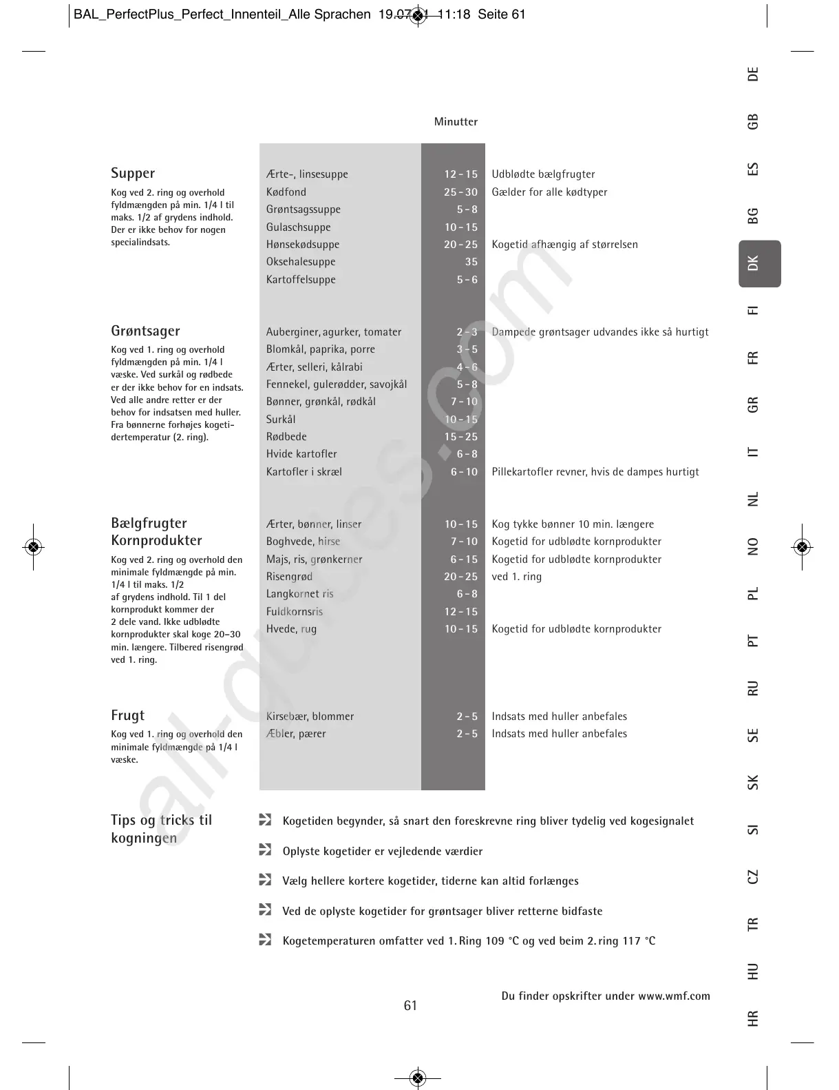 Majs, ris, grønkerner 6 -15 Kogetid for udblødte kornprodukter