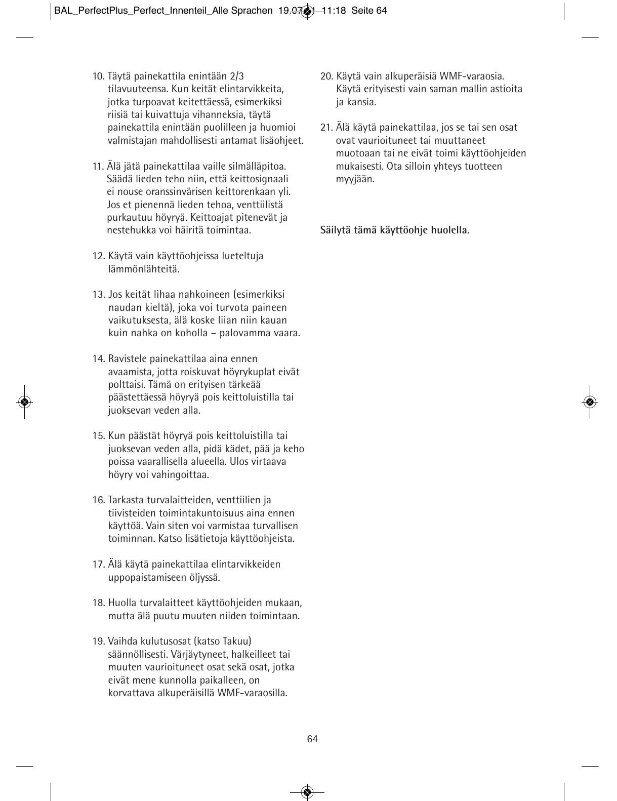 20. Käytä vain alkuperäisiä WMF-varaosia.