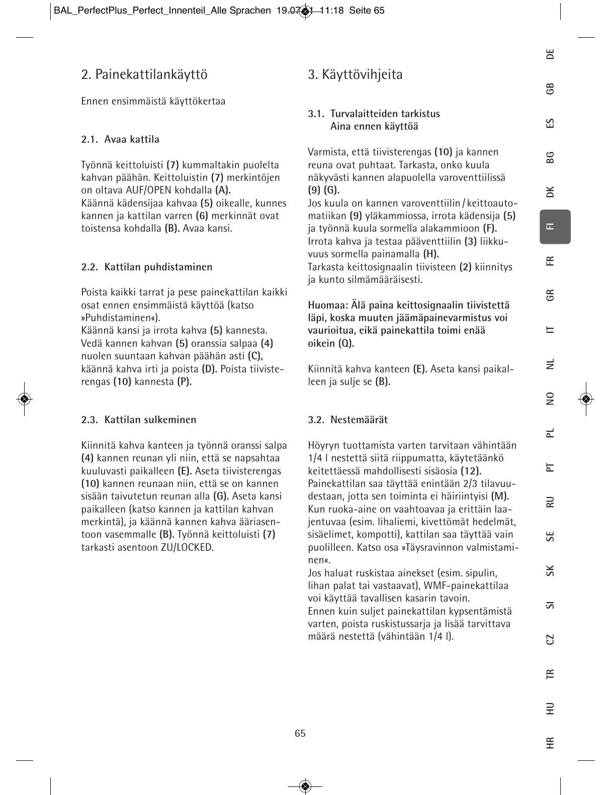 Painekattilan saa täyttää enintään 2/3 tilavuu-