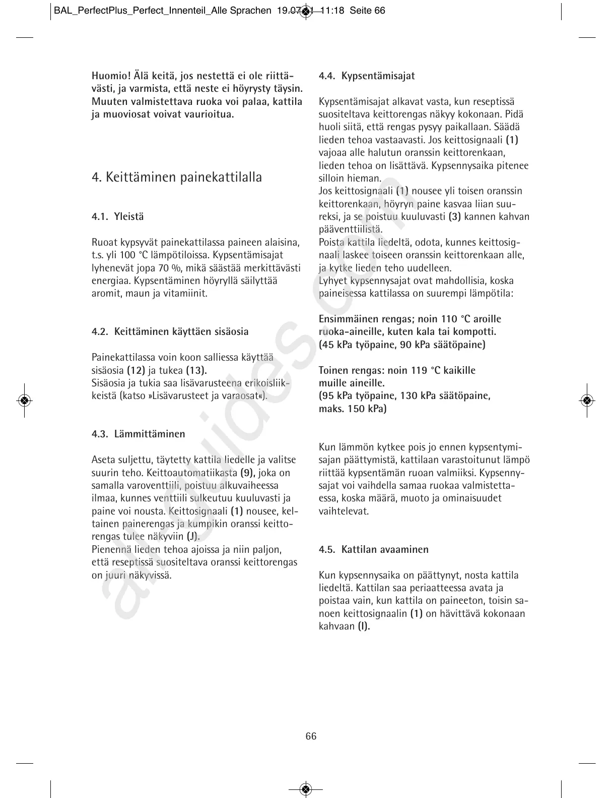 4. Keittäminen painekattilalla