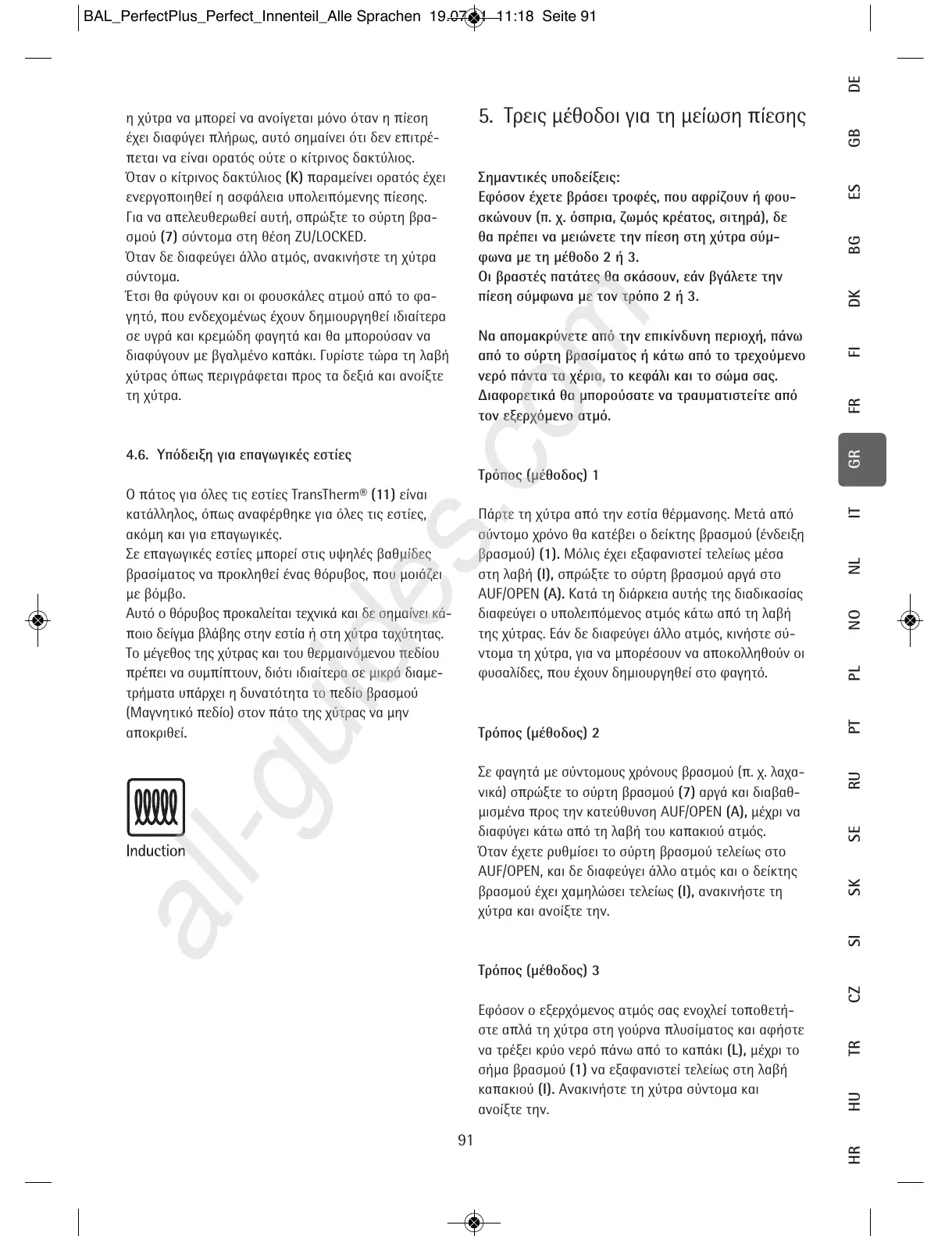 4.6. Υπόδειξη για επαγωγικές εστίες