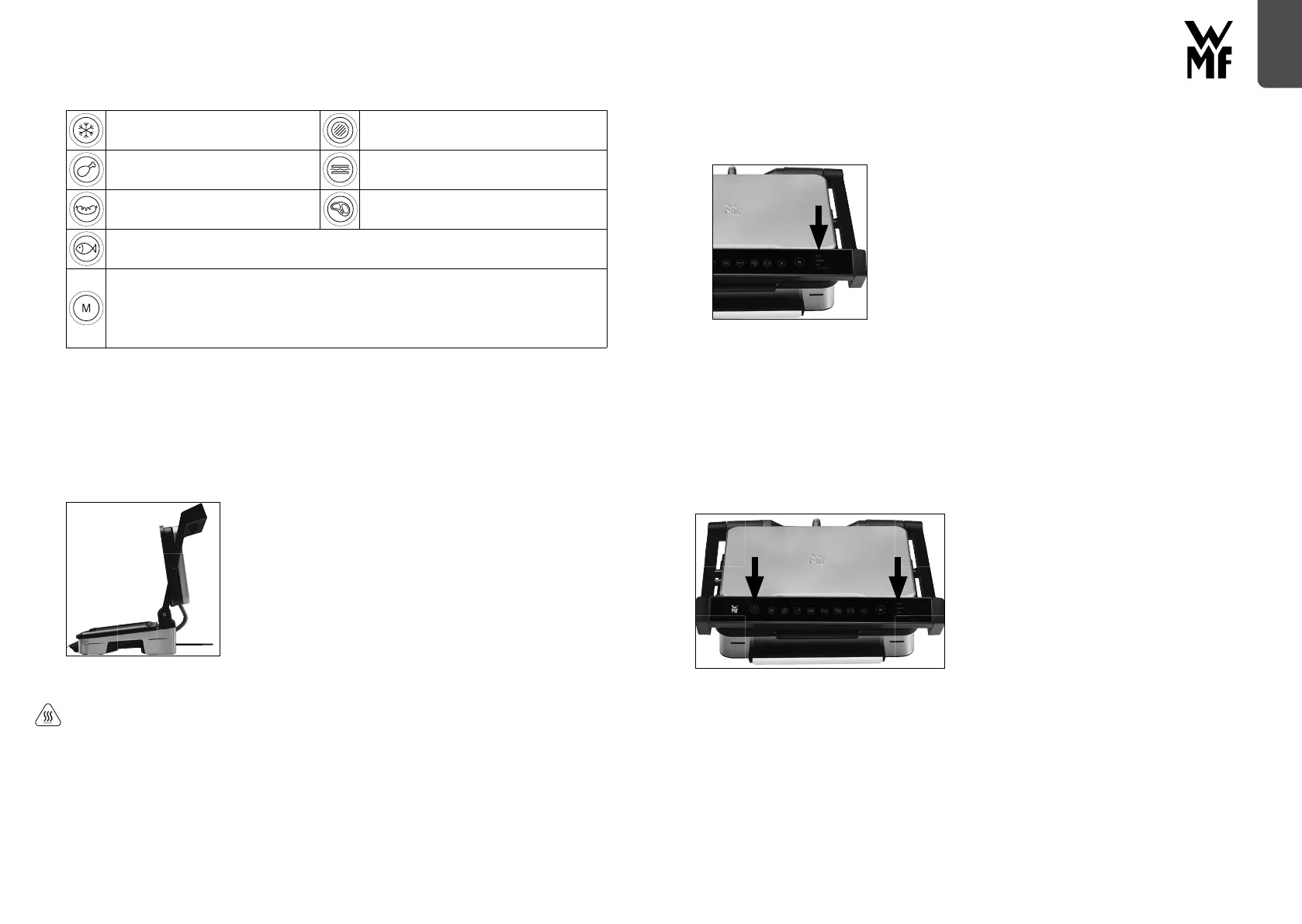 ▪ Esilämmityksen jälkeen laite on käyttövalmis. Avaa kontaktigrilli 90° vasteeseen saakka, aseta
