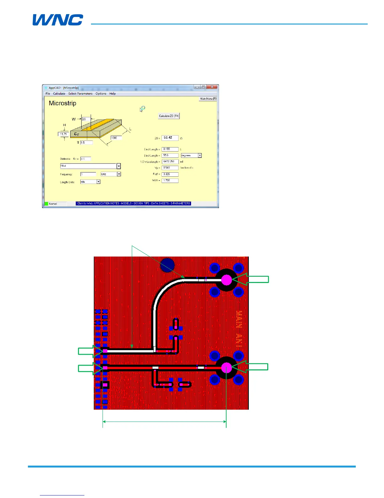 The RF trace of the test board which was used in the FCC test is defined as below.