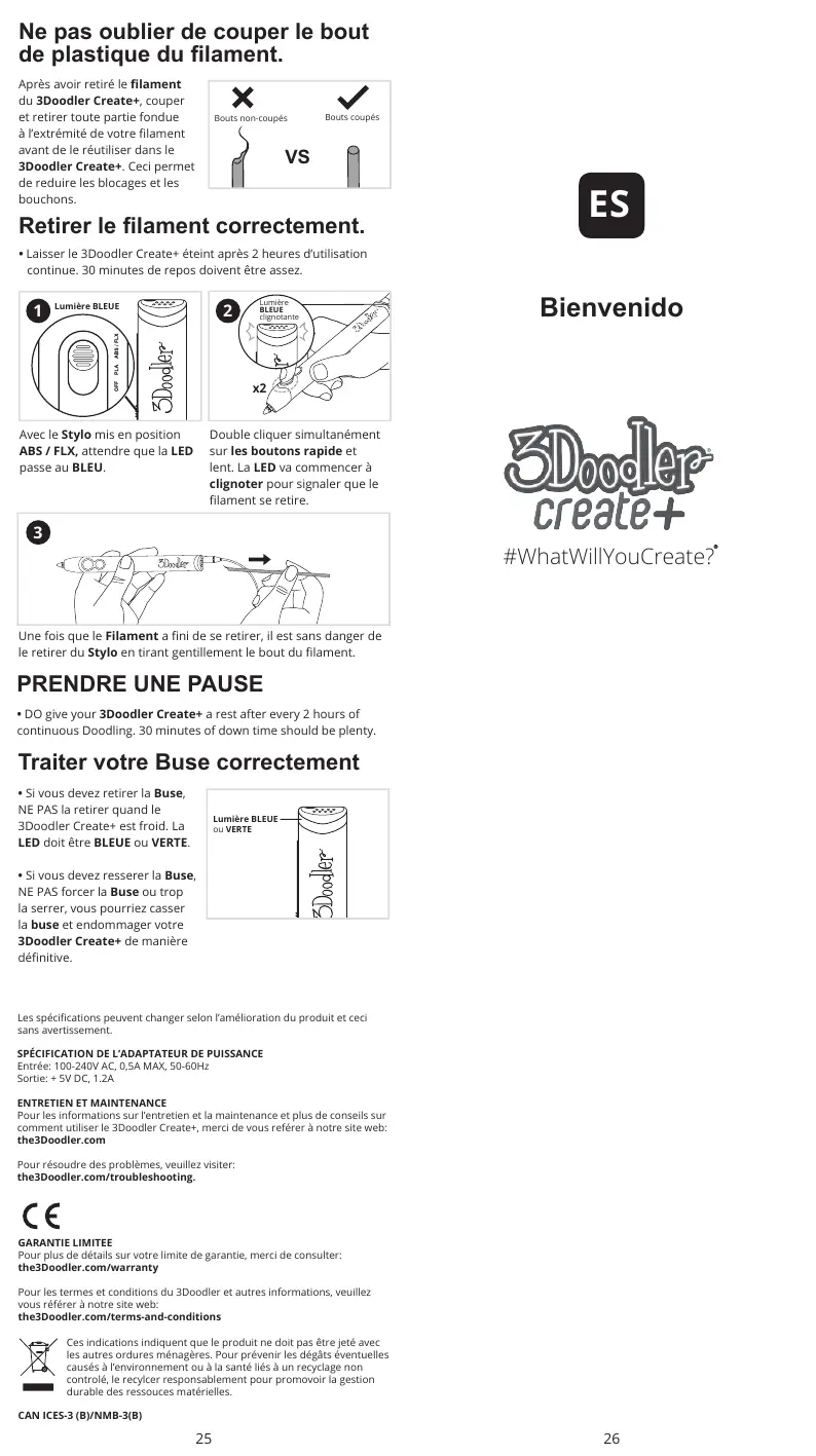 Pour les termes et conditions du 3Doodler et autres informations, veuillez