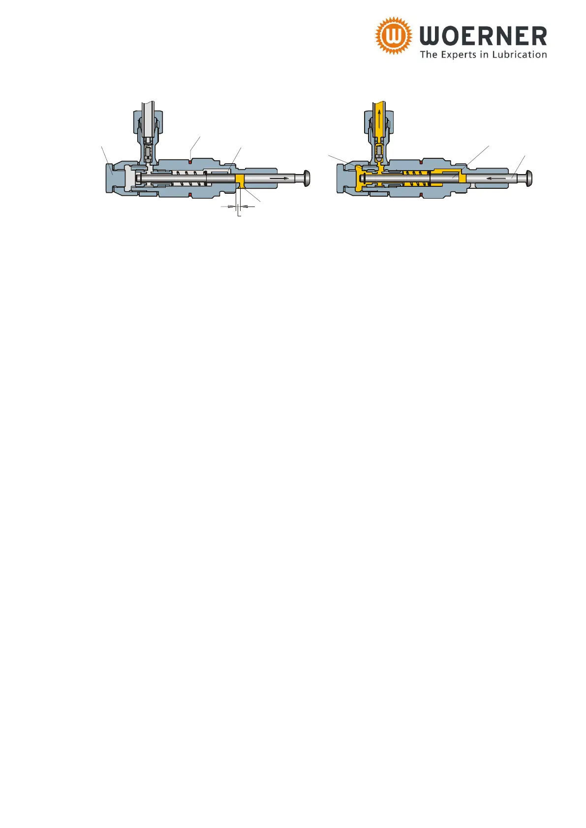 2. The control piston closes the pressure borehole 3 and stops at a defined position accord-