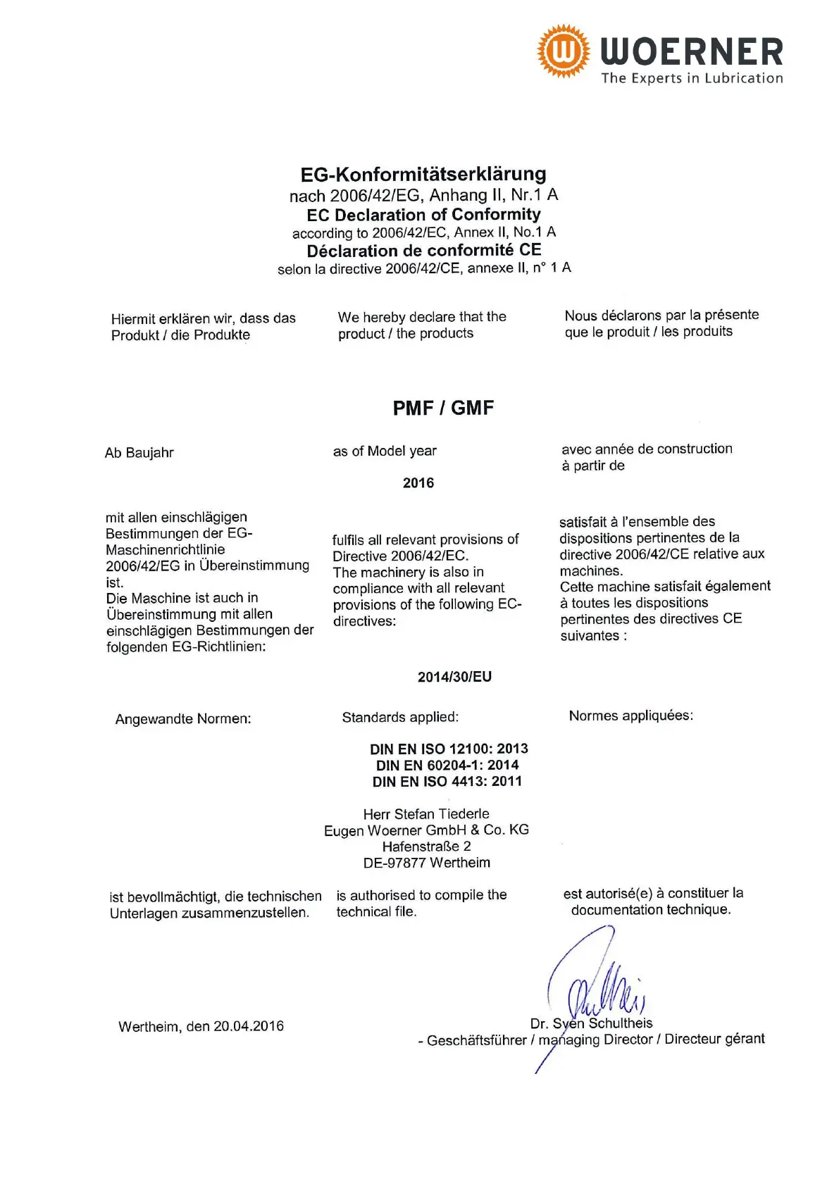 WOERNER GMF - Declaration of Conformity