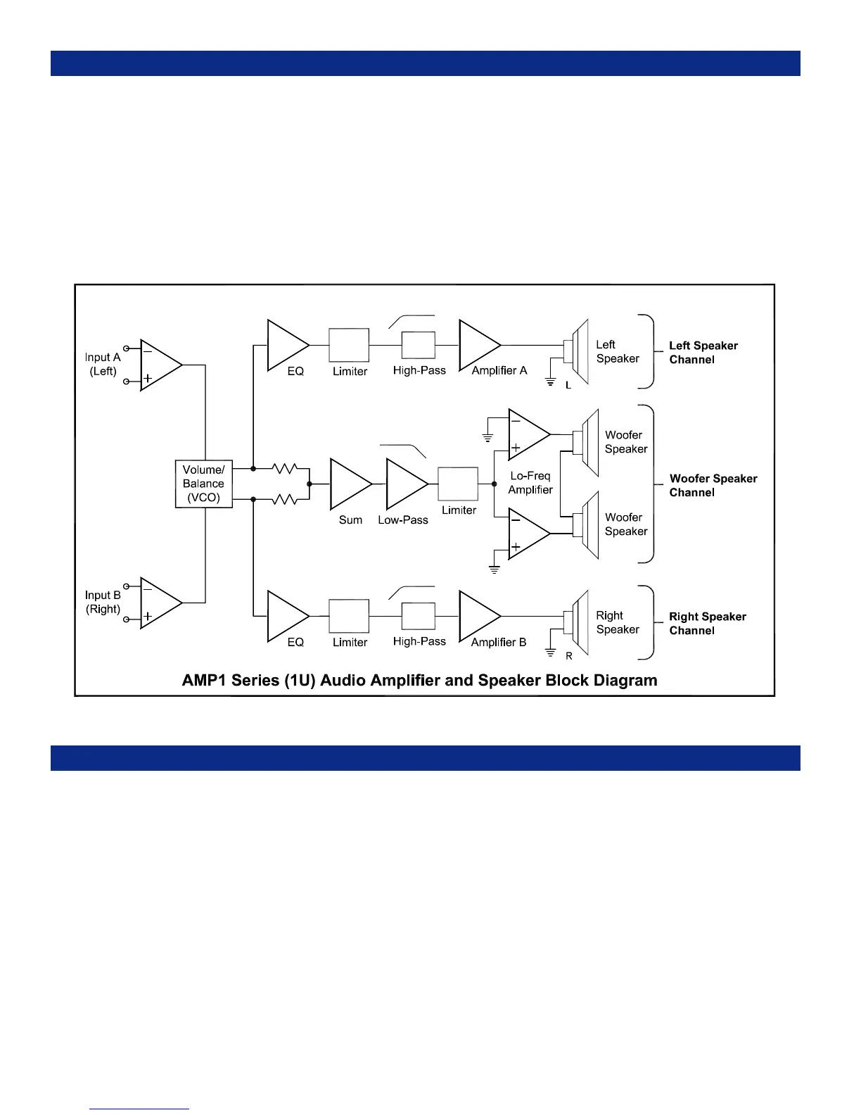 All AMP1 (1U) products are configured with two speaker channels (left and right) to reproduce midrange and high-range audio