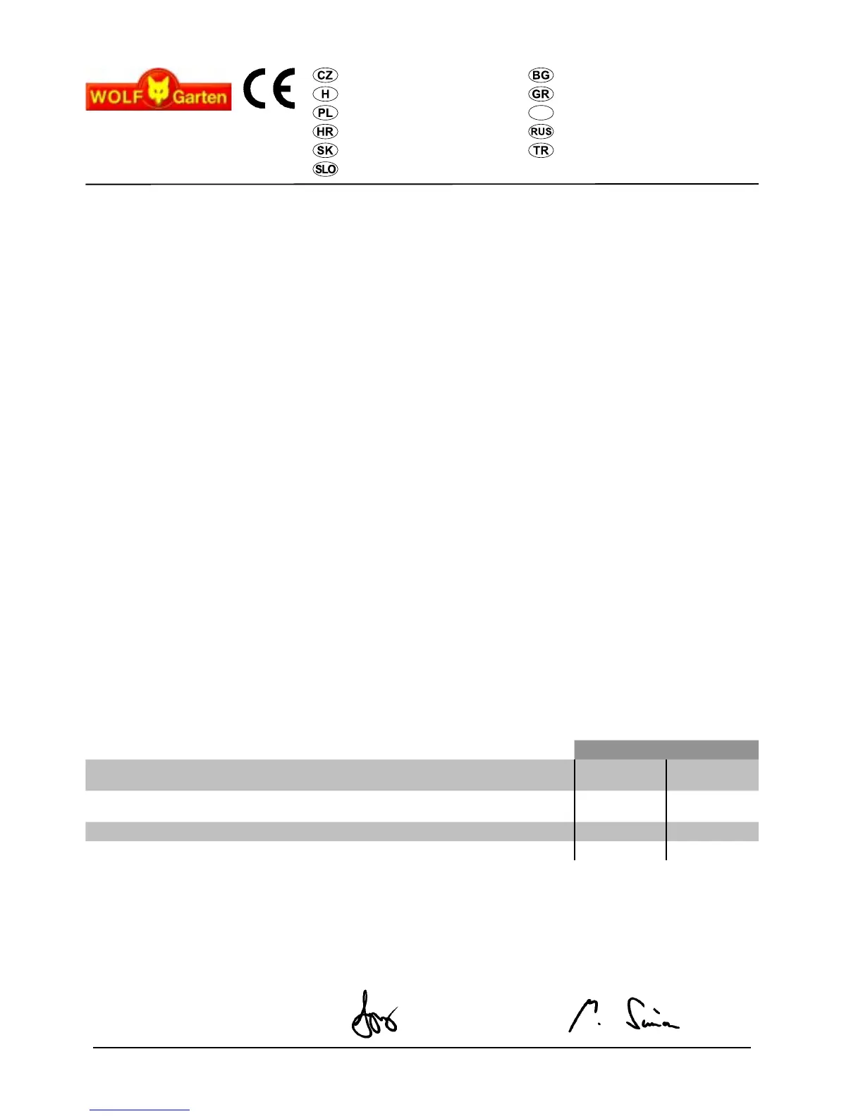 Wolf Garten 2.32 E - EG Izjava O Skladnosti