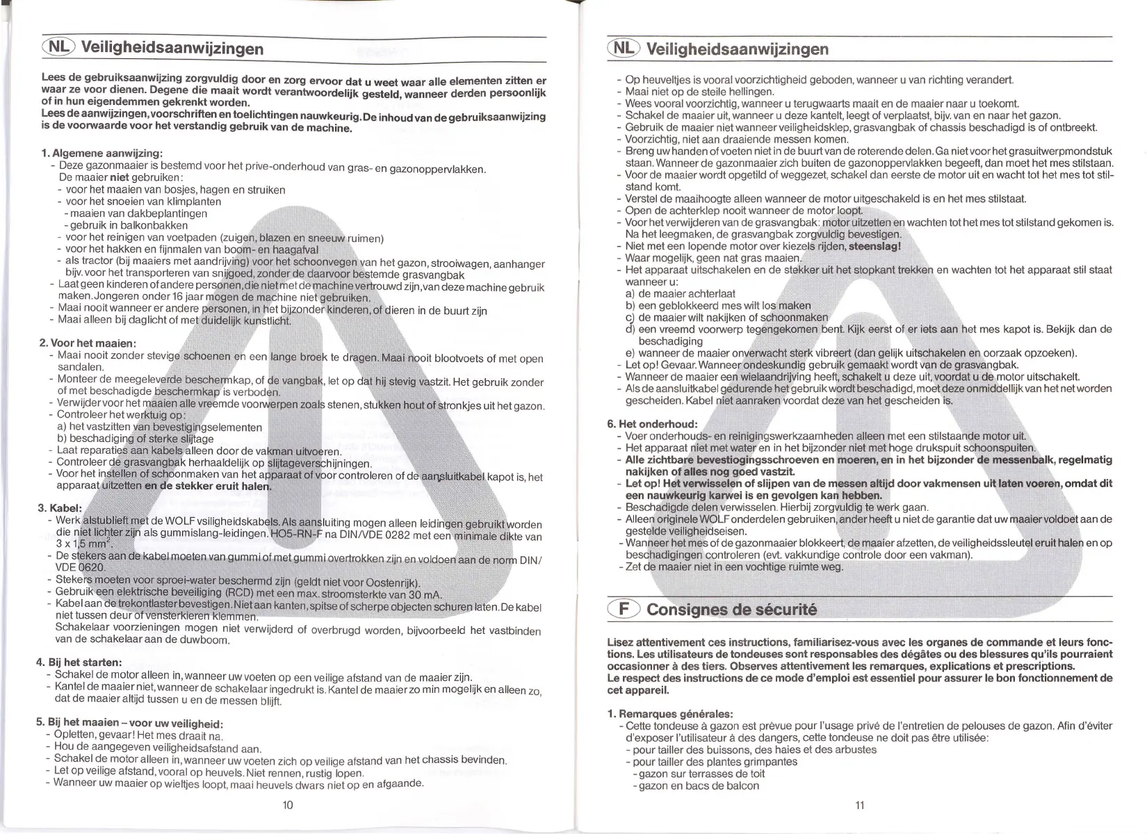 - Maai nooit zonder stevige schoenen en een lange broek te dr-agen. Maai n.oit blootvoets of met open