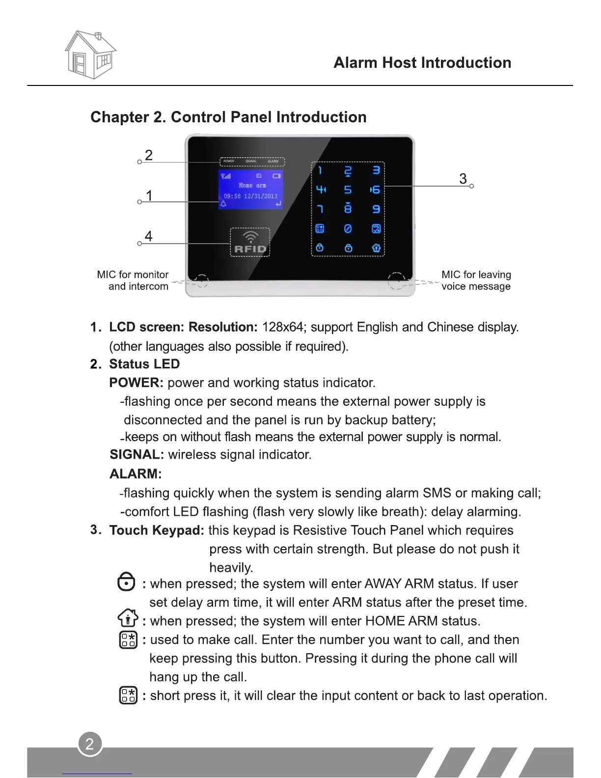 Wolf-Guard M2FX - Alarm Host Introduction; Control Panel Introduction; Touch Keypad