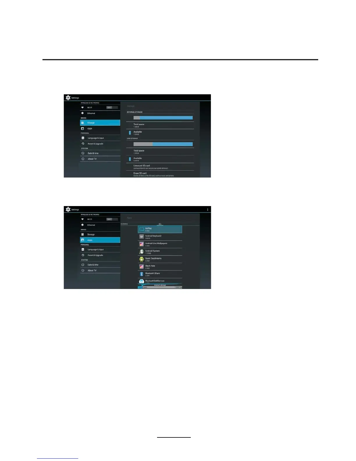 View Internal storage and USB storage space.