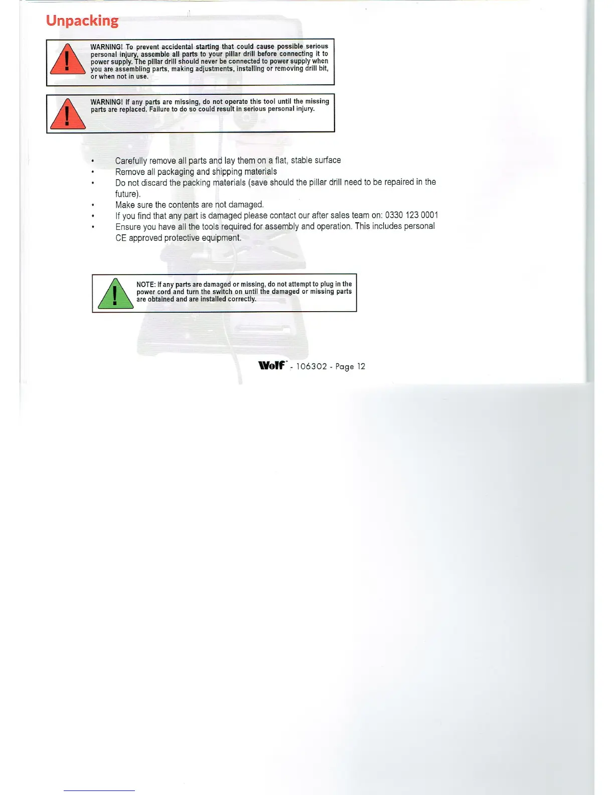 Wolf 106302 - Unpacking and Initial Checks