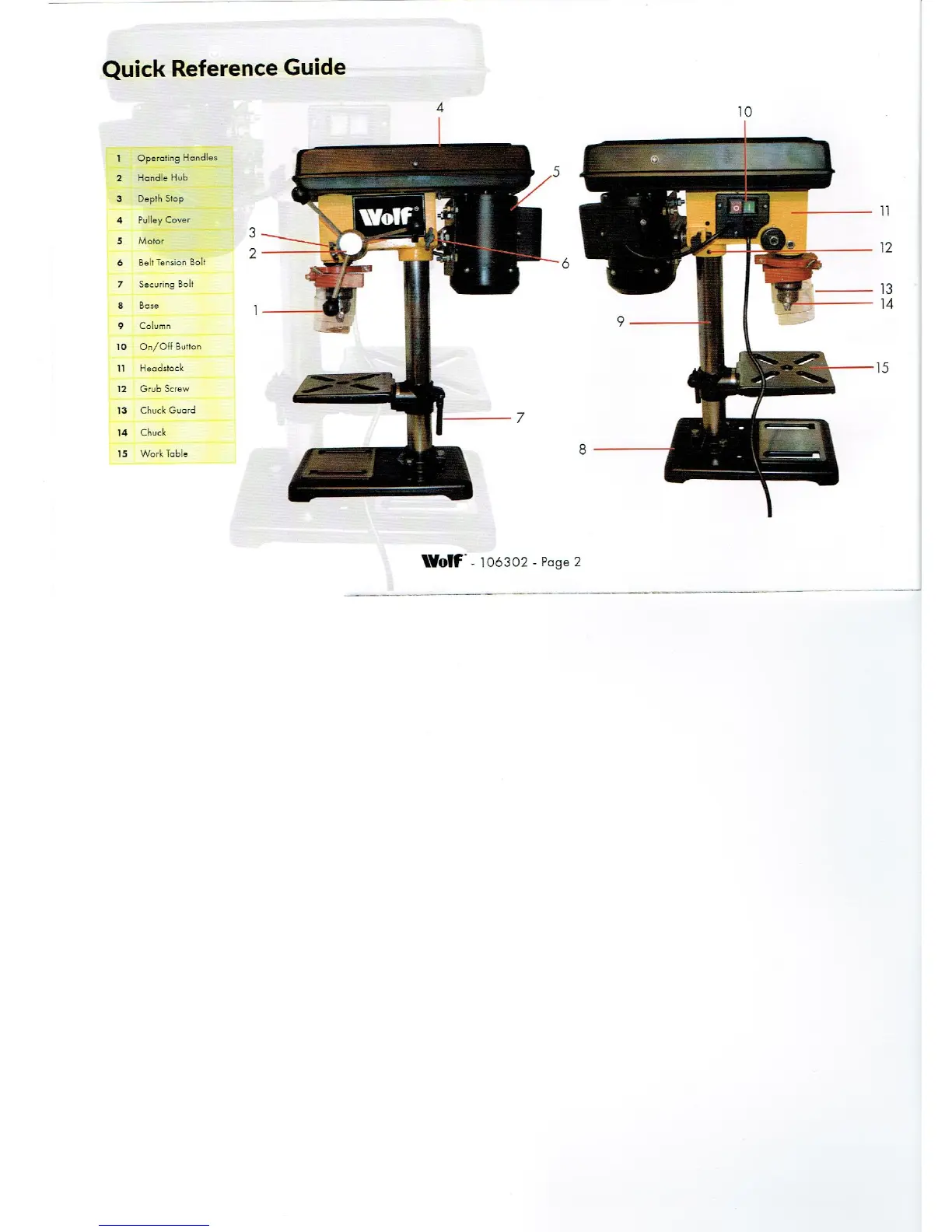 Wolf 106302 - Quick Reference Guide