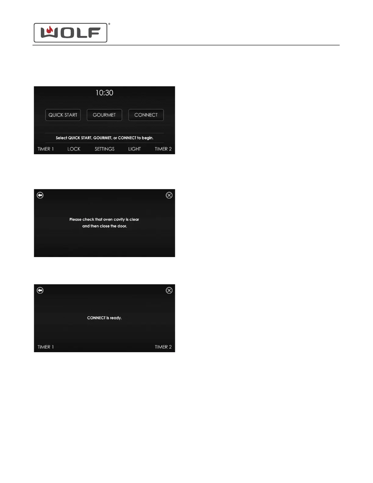 2 Touch Connect, and the "Please check that the oven cavity