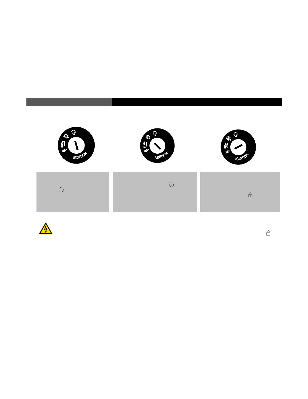 When the vehicle is parked, as described in detail #3, turn the Ignition lock switch to “ ” to