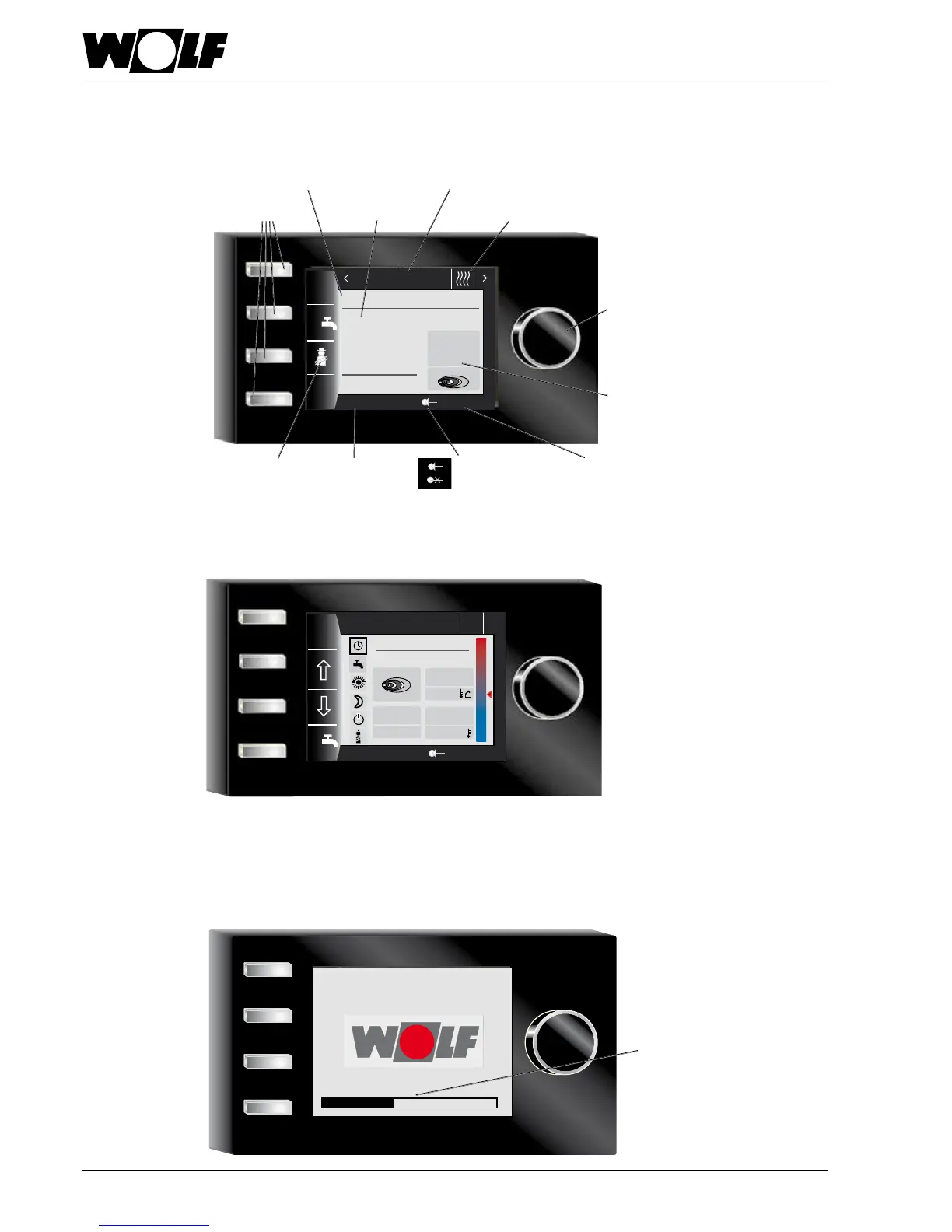 After switching on the heating appliance, the software loads, and a progress bar and the Wolf logo appear. You are