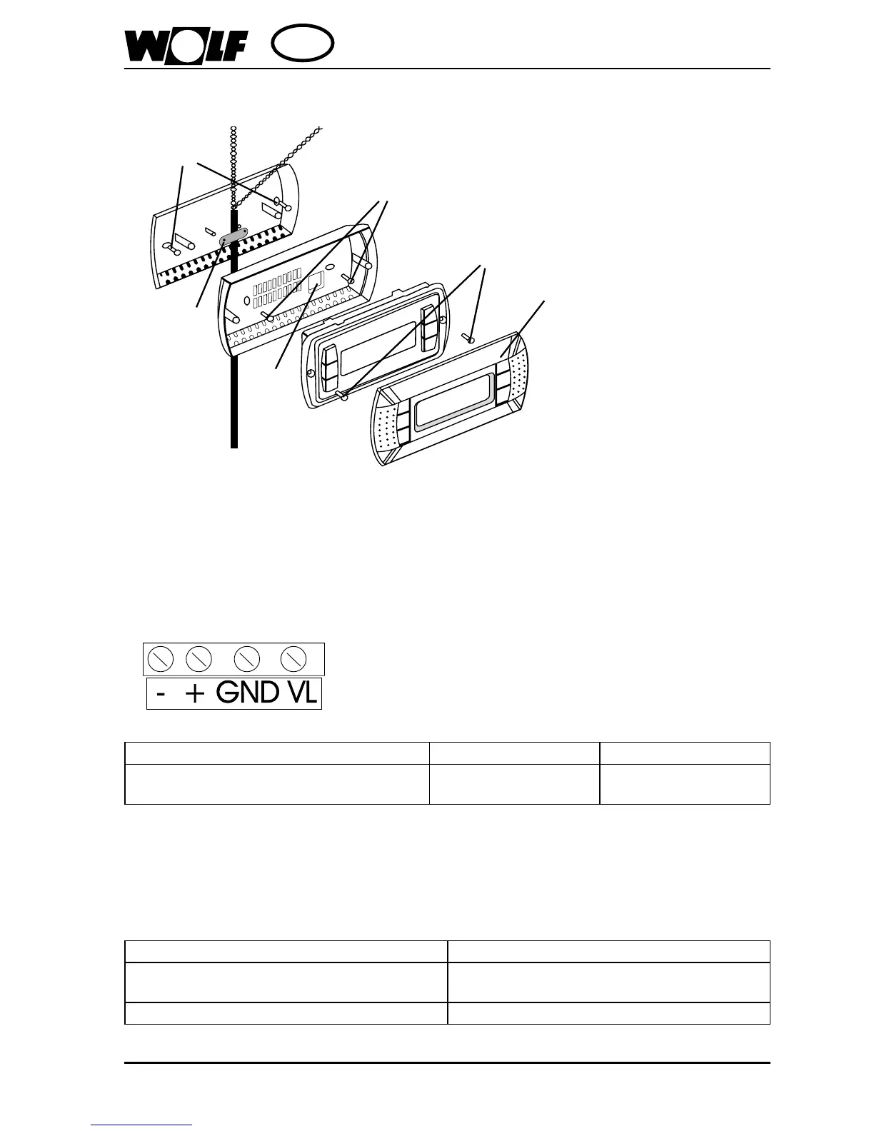 6. Fixer l’élément de commande à la paroi arrière au moyen des vis (E)