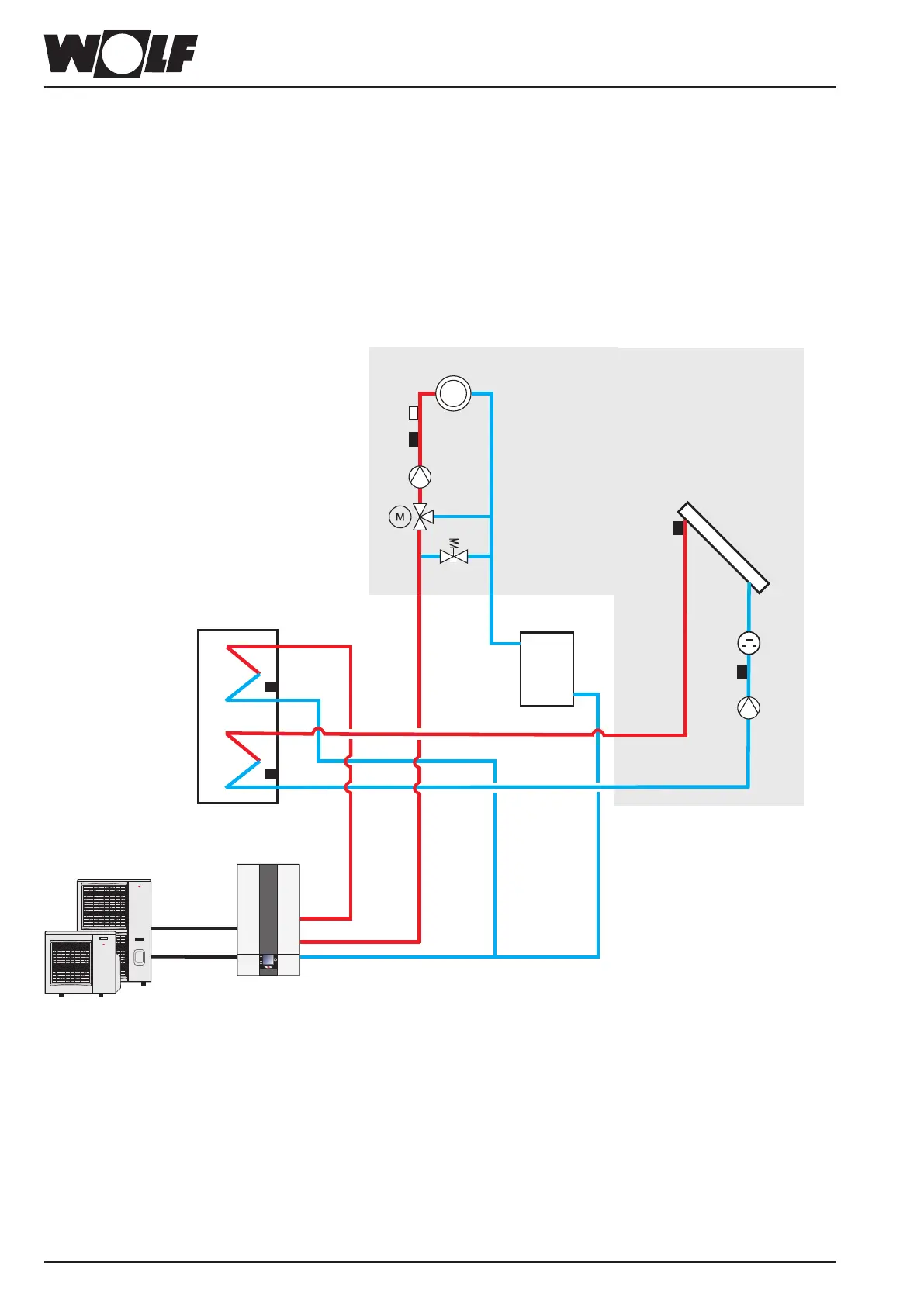 In this schematic diagram, shut-off valves, air vent valves and safety equipment are not fully represented.