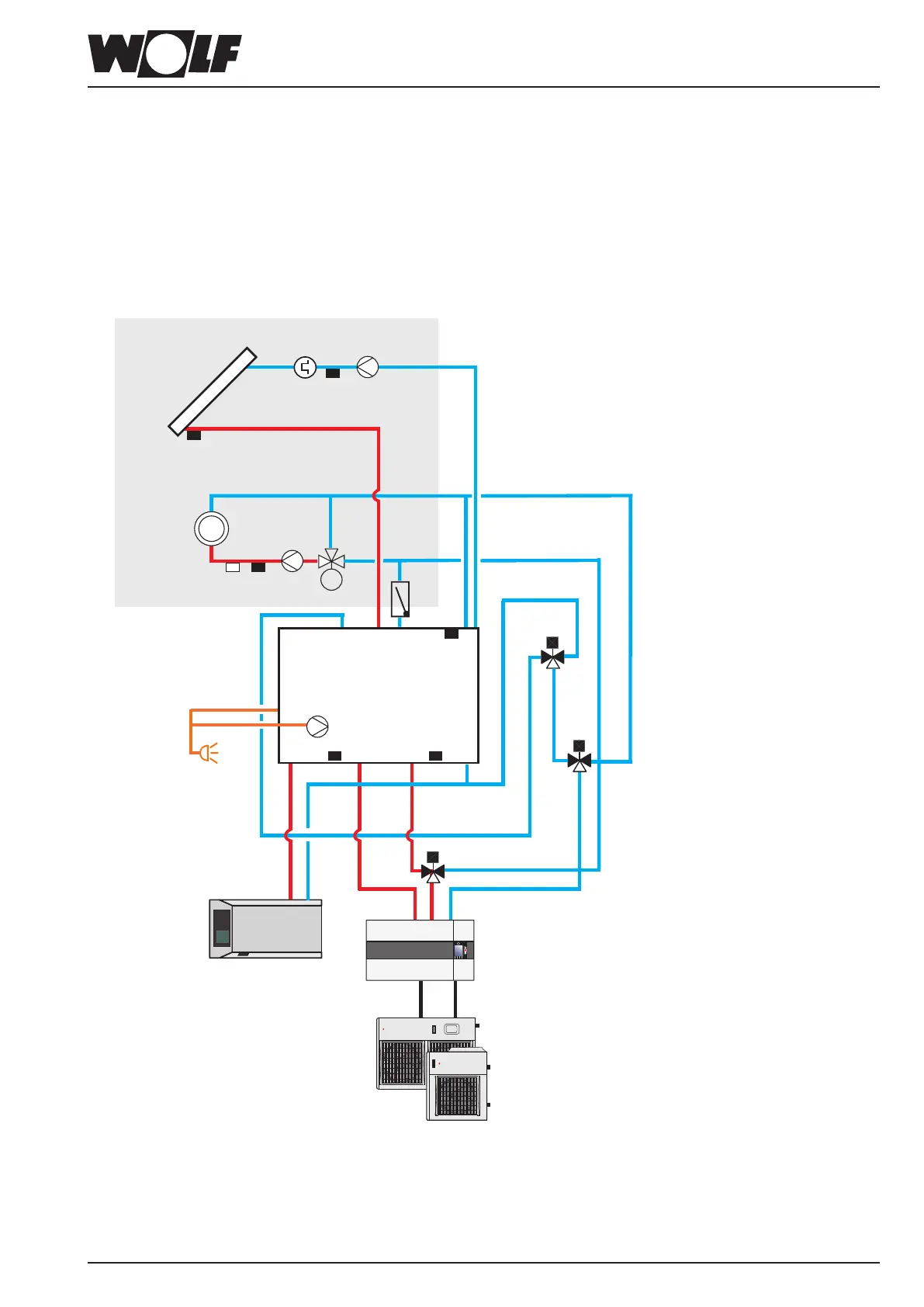 In this schematic diagram, shut-off valves, air vent valves and safety equipment are not fully represented.