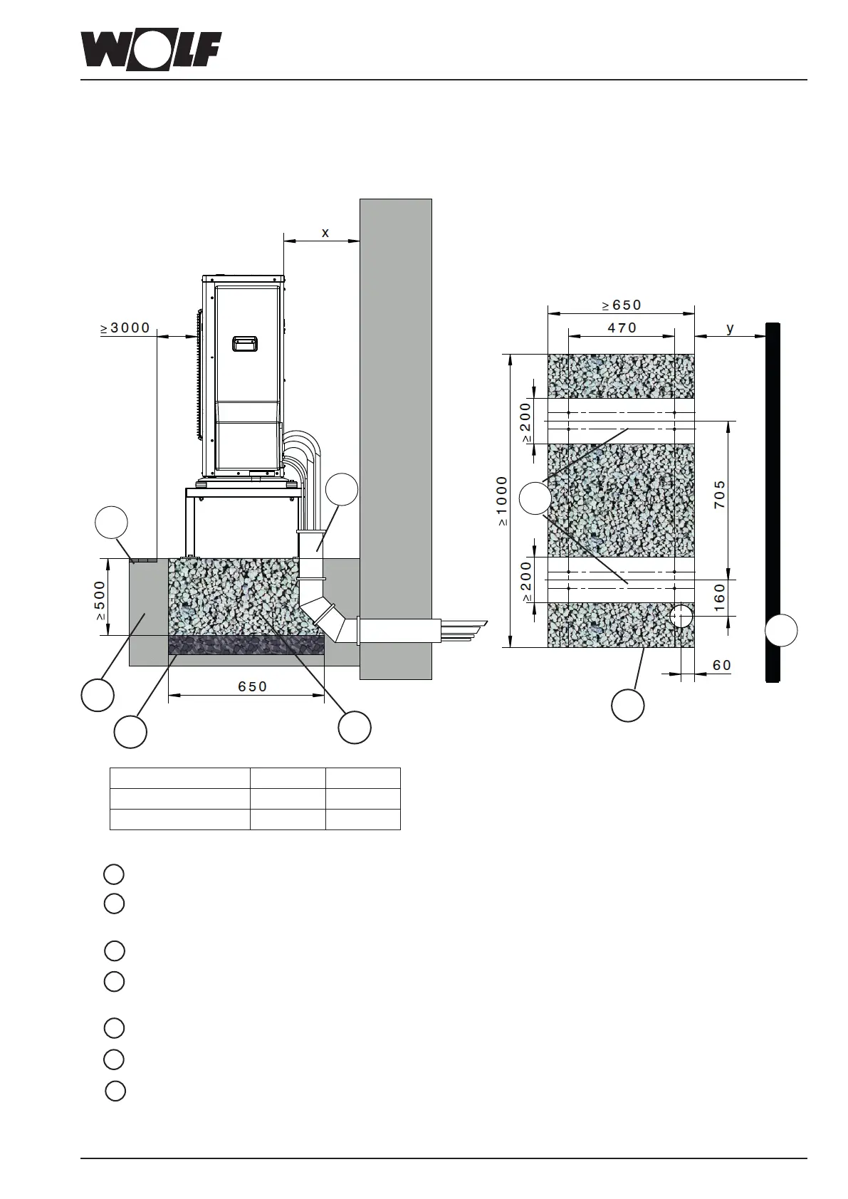 B Frost protection base for foundation (compressed gravel, e.g. 0 – 32/56 mm),