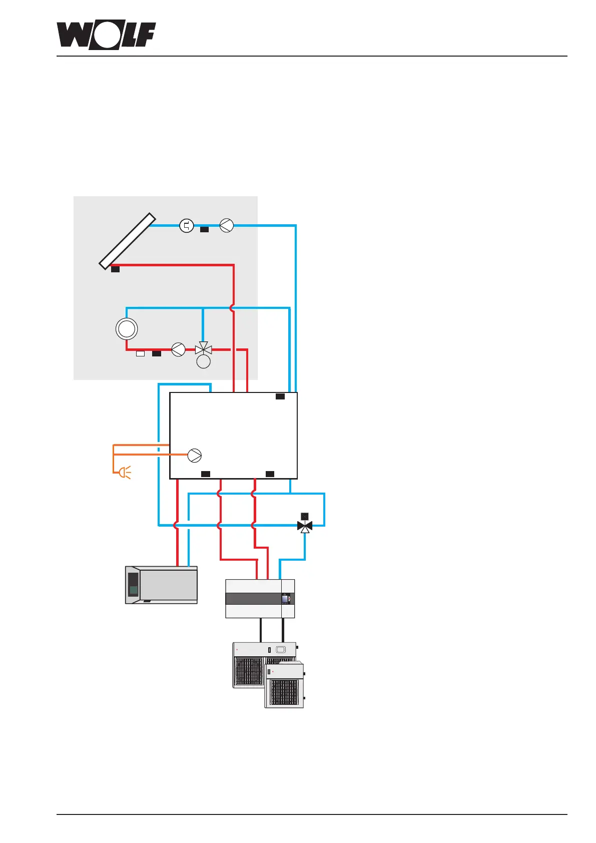 In this schematic diagram, shut-off valves, air vent valves and safety equipment are not fully represented.