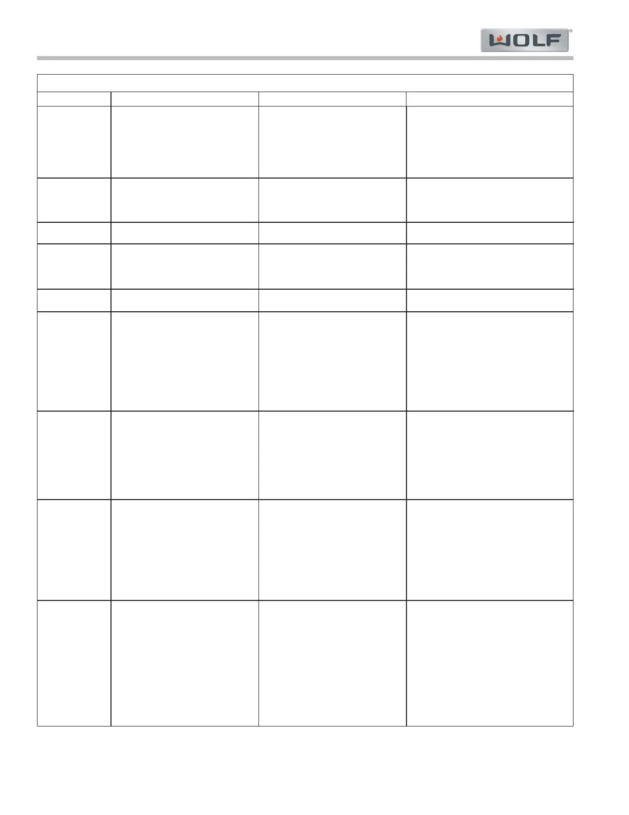 General Errors Table - CE152TF/S, CI152TF/S and TM15TF/S