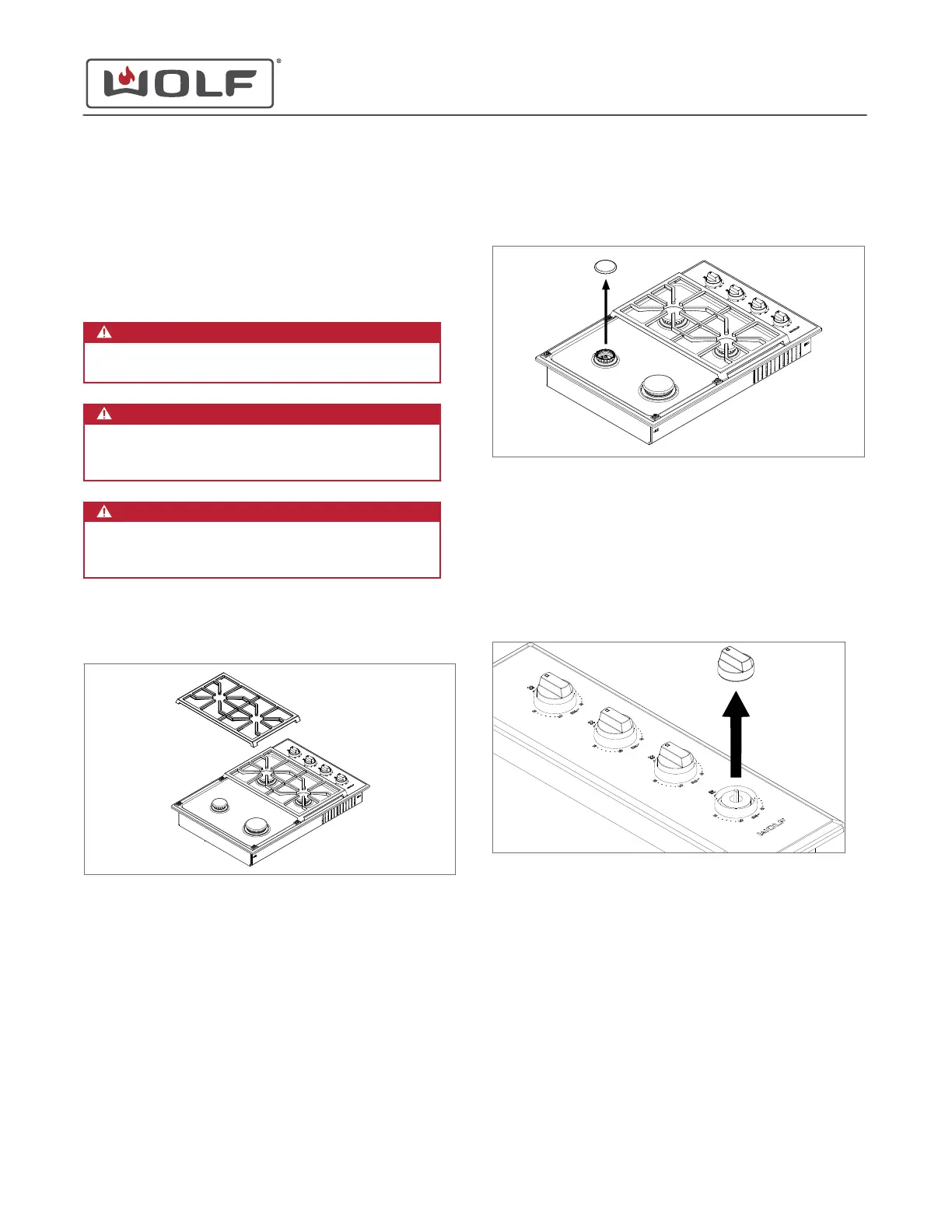 burner caps. Uninstall the unit, and then remove the knobs,